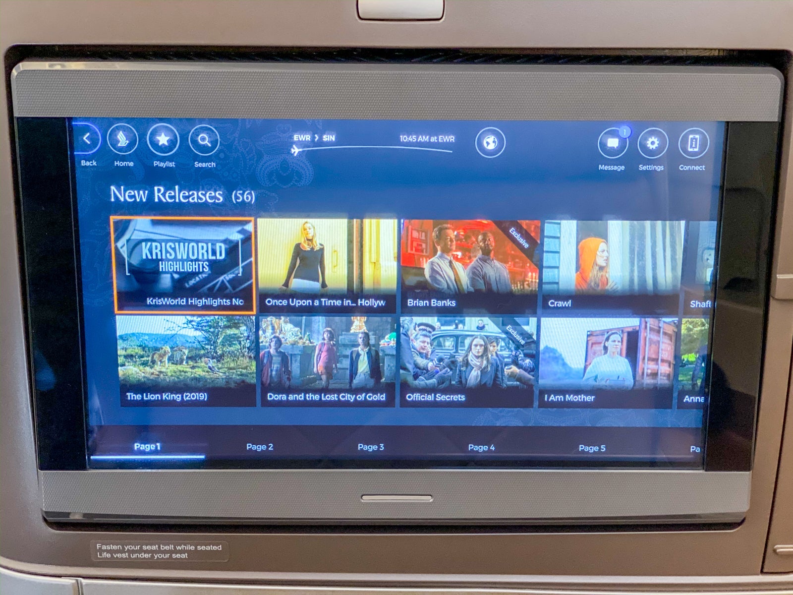 Singapore's Airbus A350-900ULR operates some of the world's longest flights, so you'll be happy to hear that there's plenty of content to keep you occupied during your journey. KrisWorld, Singapore's inflight-entertainment system, had over 300 movies and 700 TV shows. Of the movies, about 20% of them were new releases like "The Lion King," "Once Upon a Time in Hollywood" and "Toy Story 4." If you're a frequent traveler, you'll be thrilled to learn that Singapore rotates many of their movies on a monthly basis. In November, Singapore offered 79 new movies on board.
