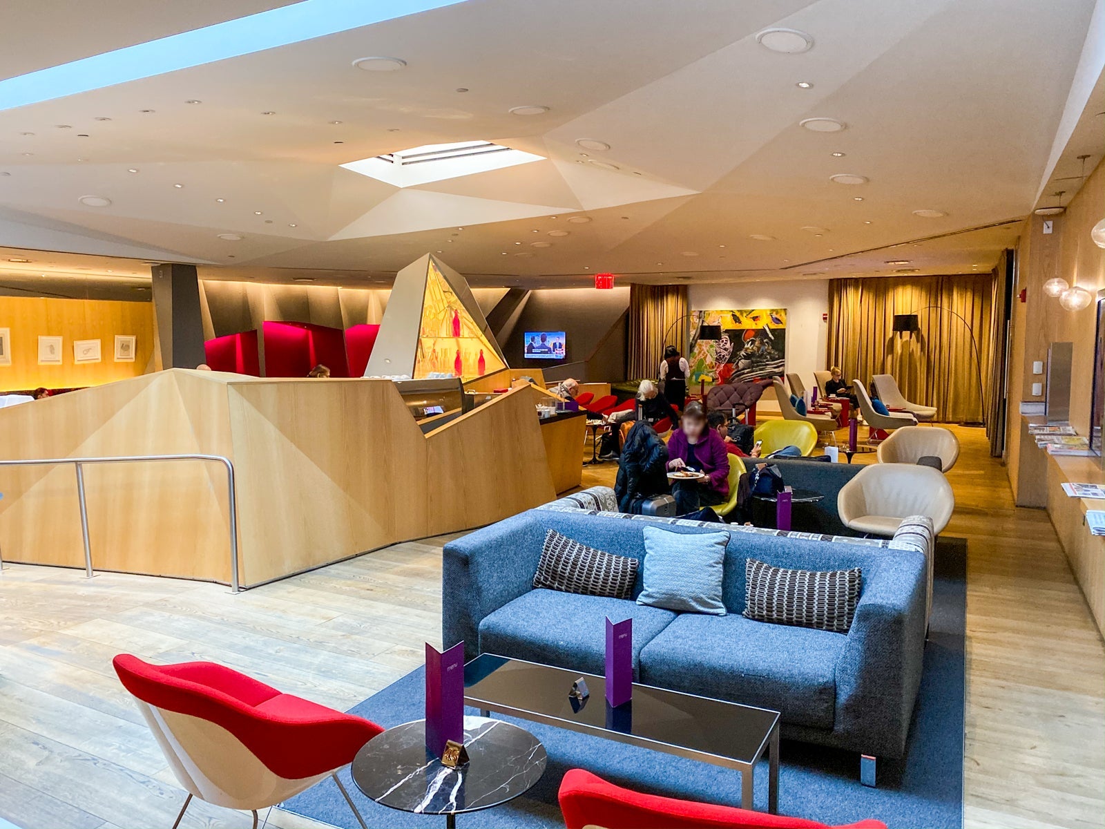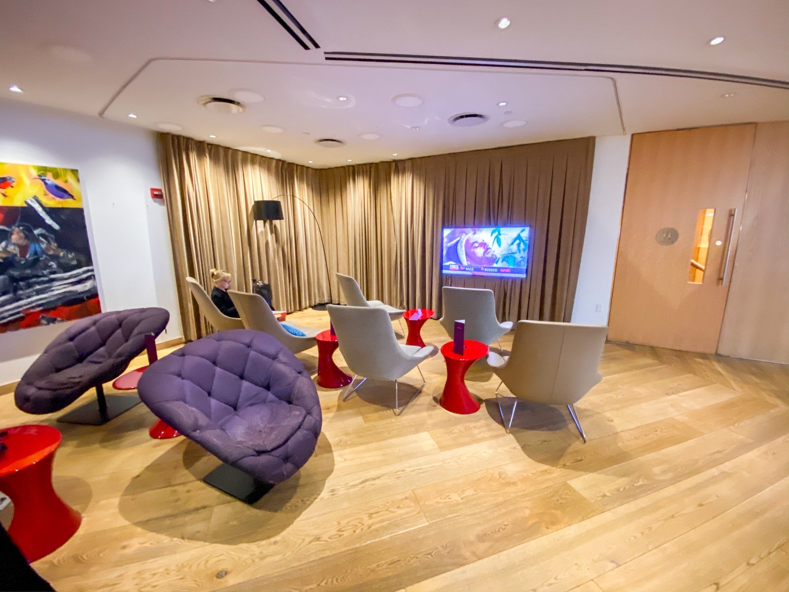 The lounge is basically just one large room with different seating areas. There are no windows, and this is definitely one of the more bare-bones lounges that Virgin operates.