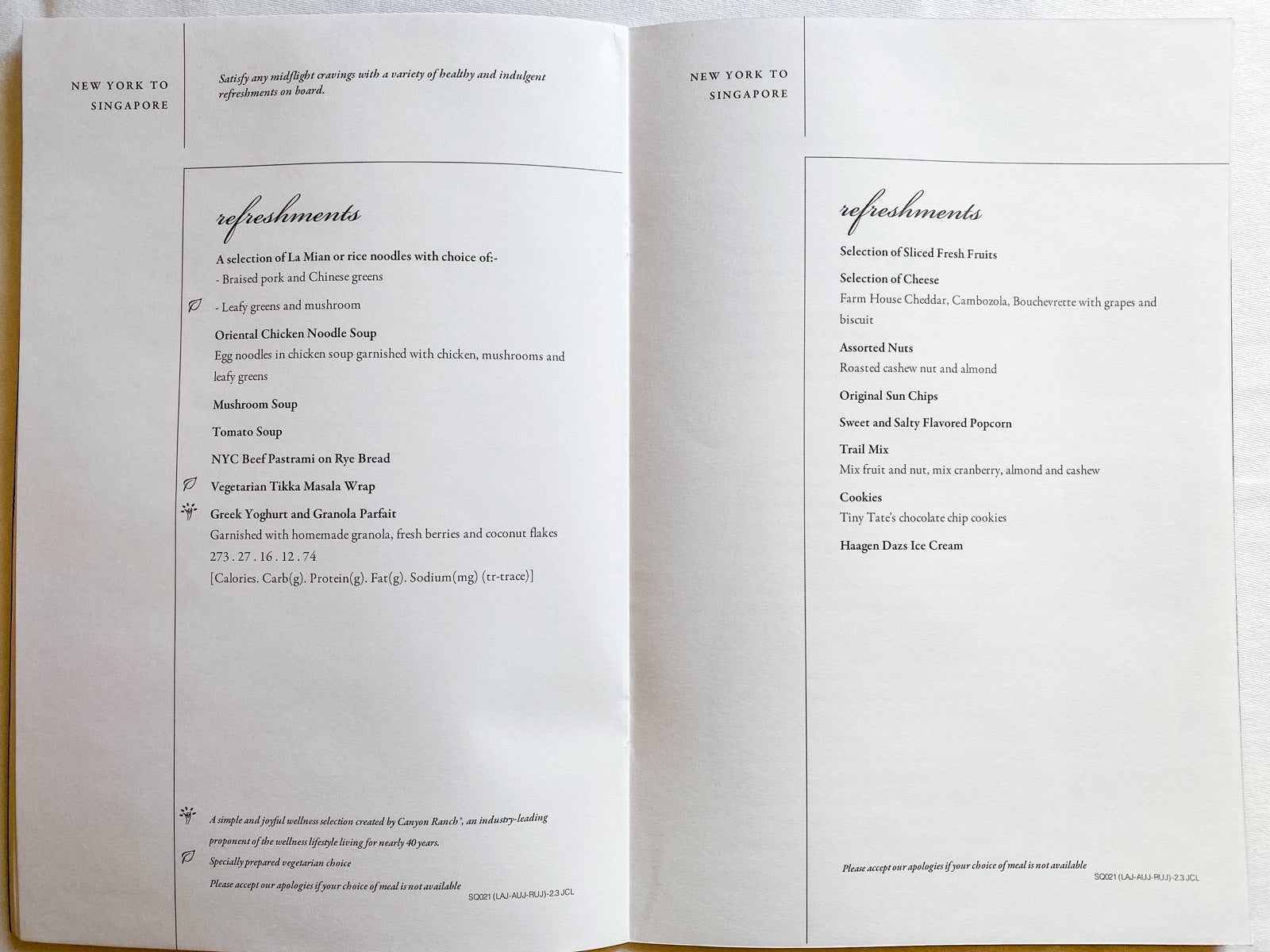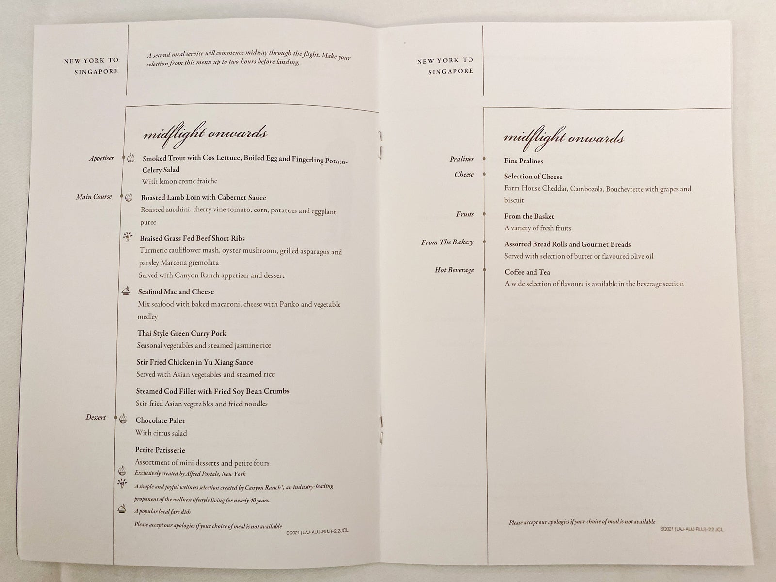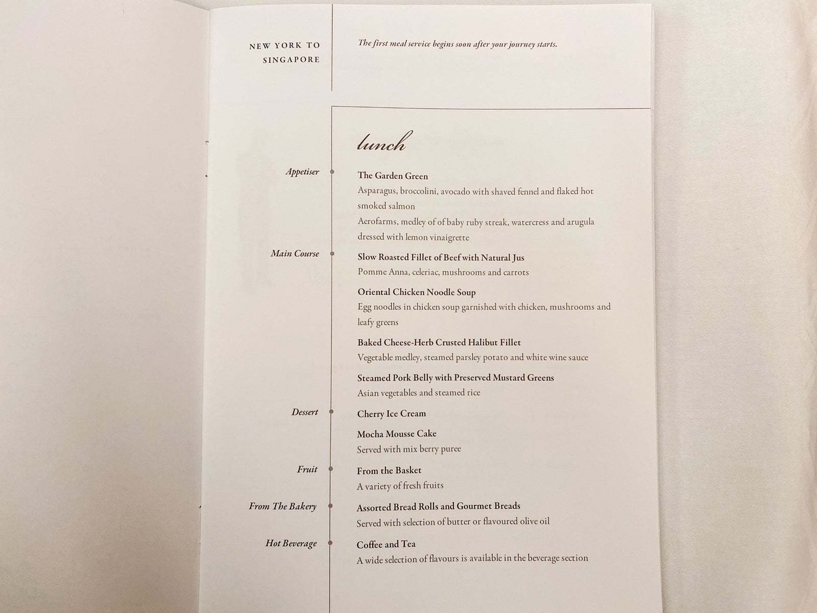 Singapore did a fantastic job curating an exhaustive menu for the world's longest flight. Not only was I spoiled for choice, but everything I ate was delicious, too.