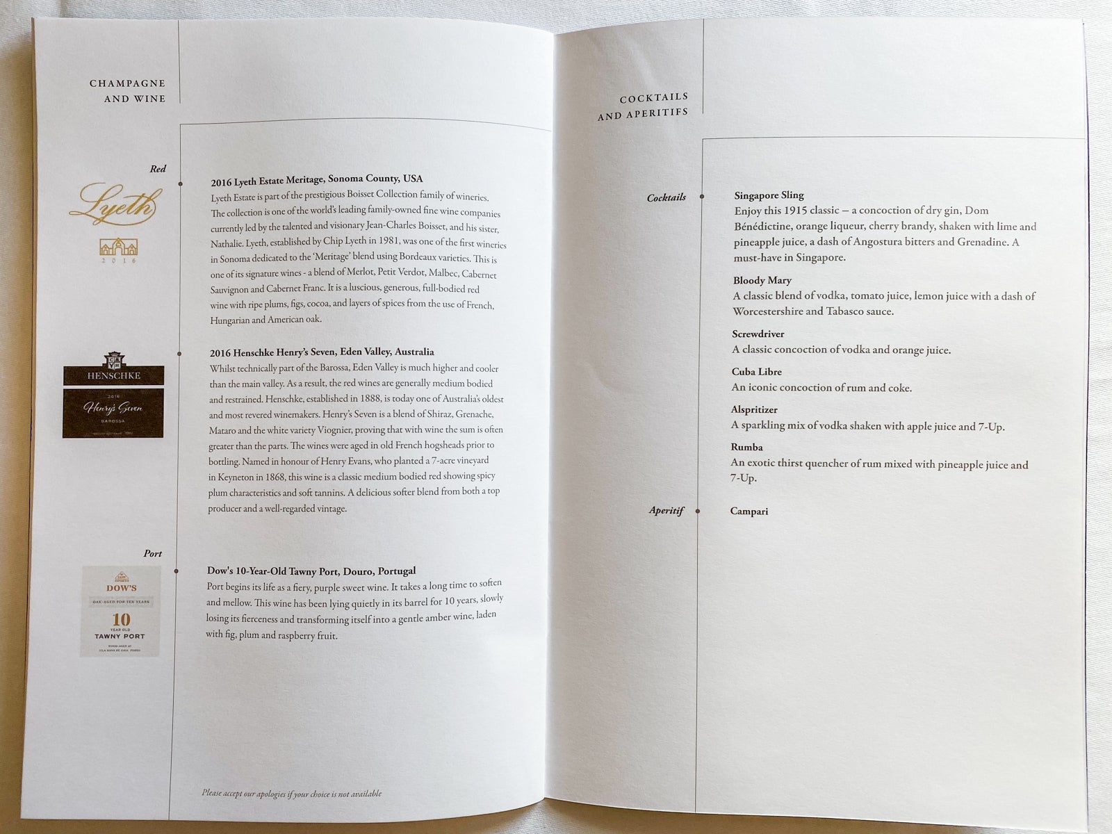 Aside from the extensive inflight menu, Singapore also offers its Book the Cook service, which allows you to select from nine off-menu main courses at least 24 hours before your flight's departure. I was quite satisfied with what was being served on the inflight menu, so I made all my selections on board.