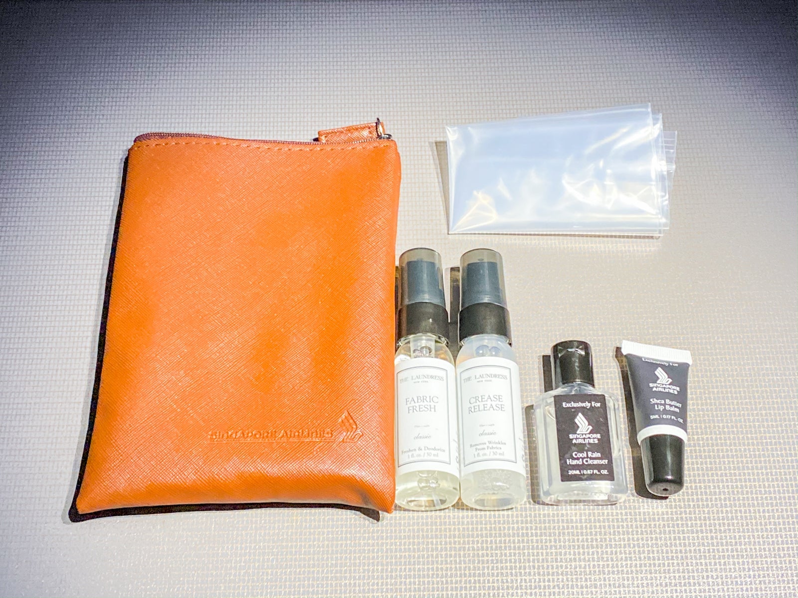 Flight attendants came through with a toiletries bag about midway through the flight. The bag had Laundress fabric freshener and fabric wrinkle remover, as well as hand cleanser, lip balm and a 1-quart Ziplock bag for toiletries. It was definitely a nice touch, but I missed the traditional amenity kit.