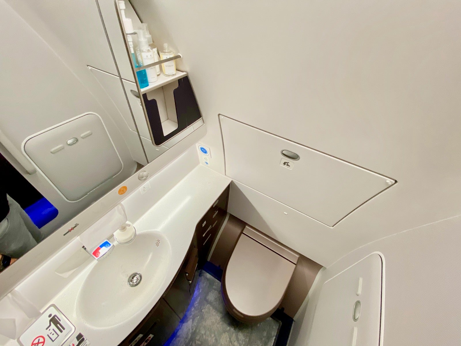There are four standard-size bathrooms for the 67 business-class passengers. There was never much of a line, and the bathrooms were kept pristine throughout the flight.