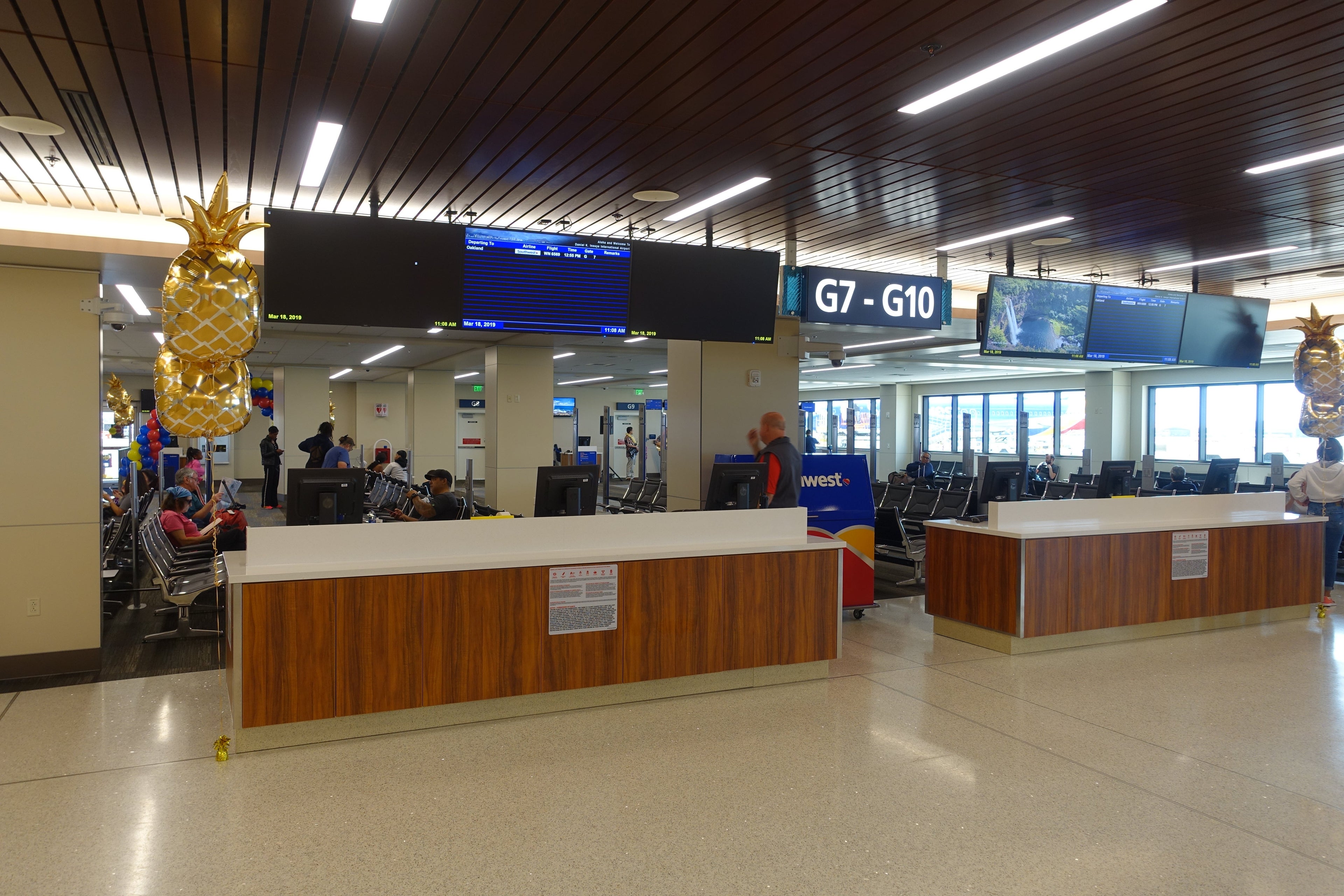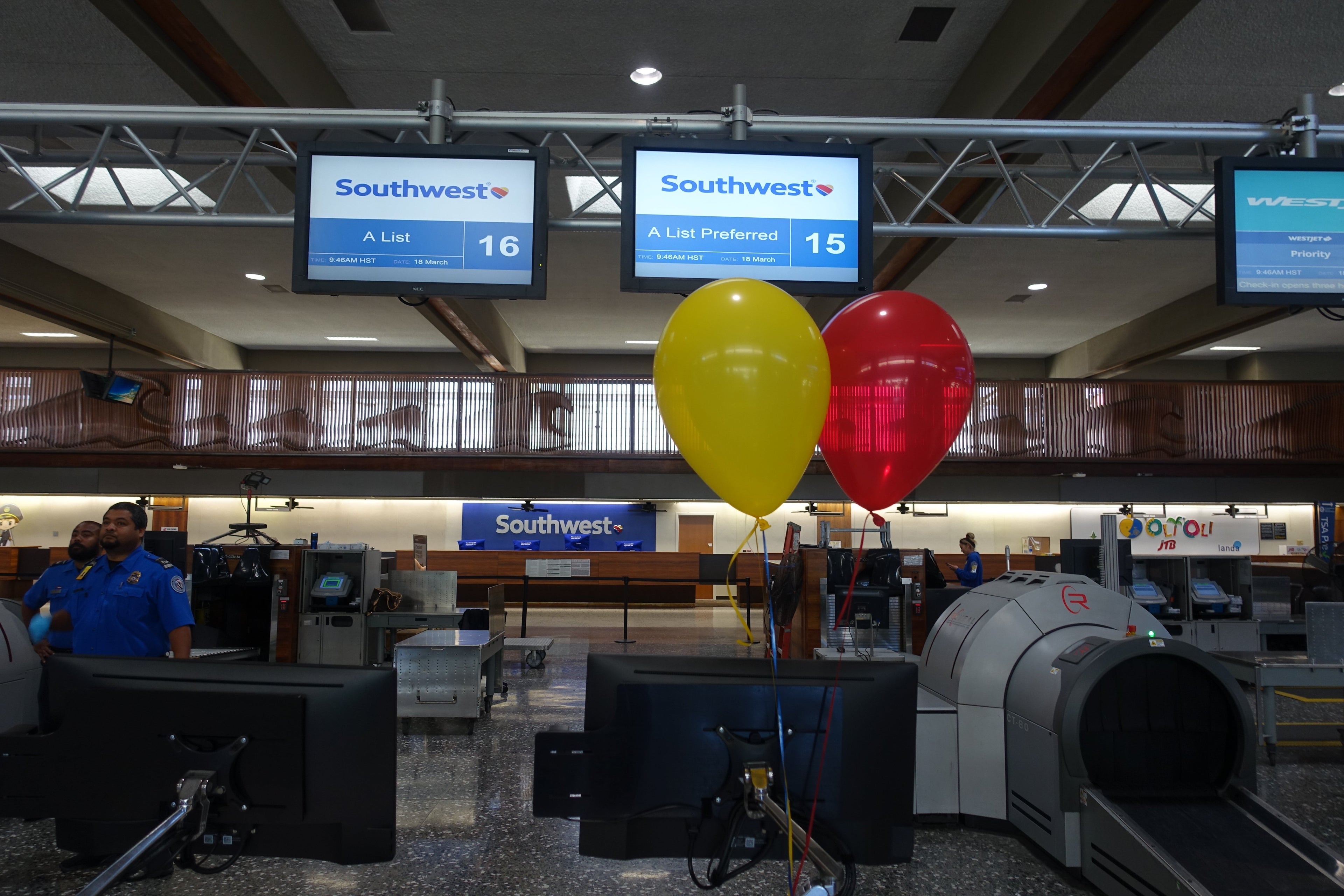 It was the first day for the Southwest check-in and ticketing area at HNL, and the newly unveiled counters were sporting balloons to mark the occasion.