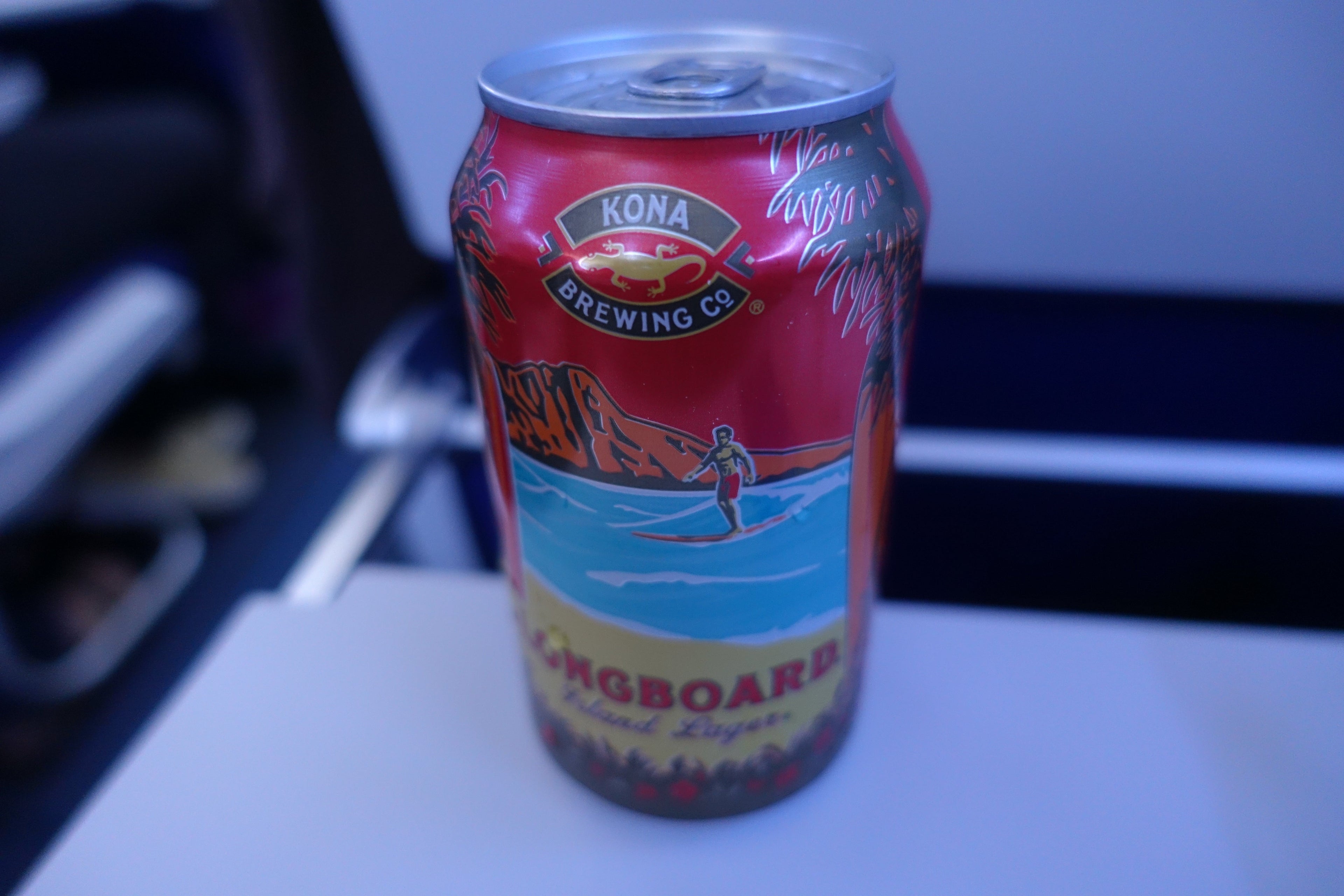 Southwest offered soda, juice and coffee for free. Alcoholic drinks usually cost around $7. I wanted to indulge in one of the Hawaiian drinks the carrier is now offering on its island-bound flights, so I opted for the Kona Brewing Co. Longboard Island Lager, a refreshing, summery beer.