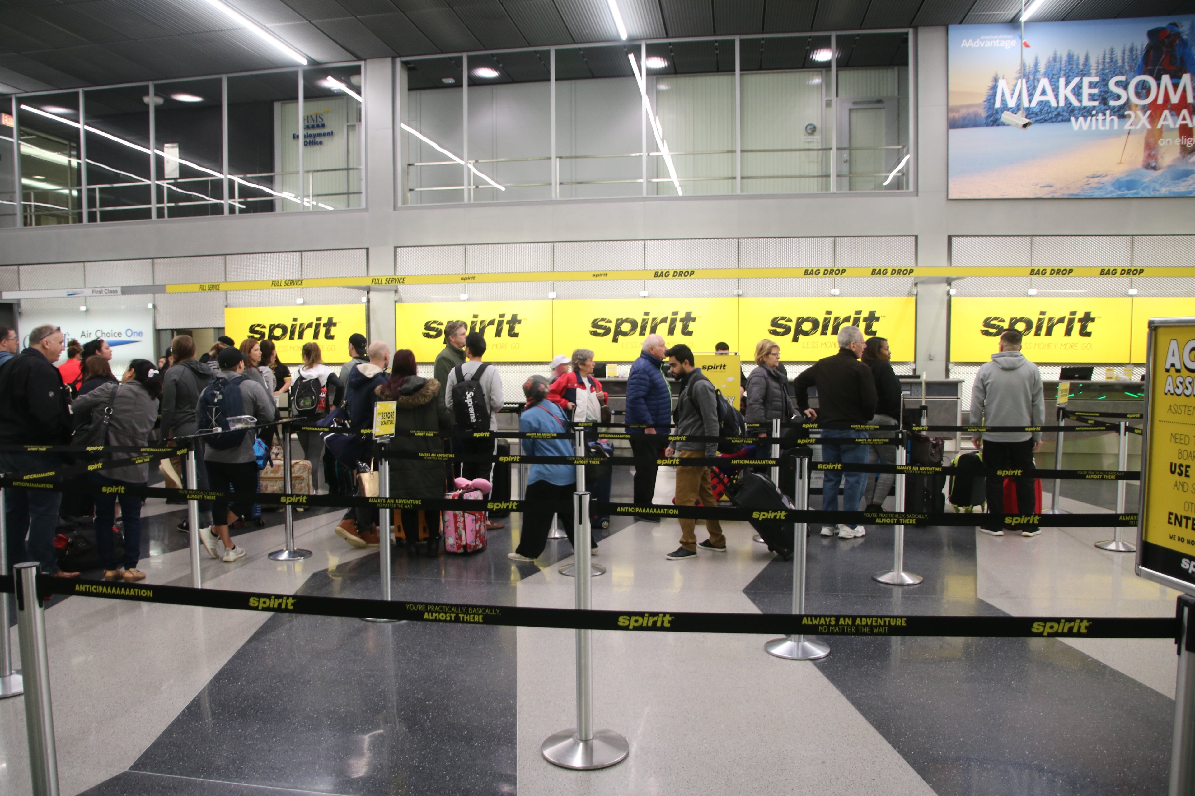 I checked in on Spirit's app to avoid the $10 fee at the airport. I could have also avoided this by checking in online and printing out a boarding pass, which also would have allowed me to use the baggage drop kiosks instead of waiting in a line like this one: