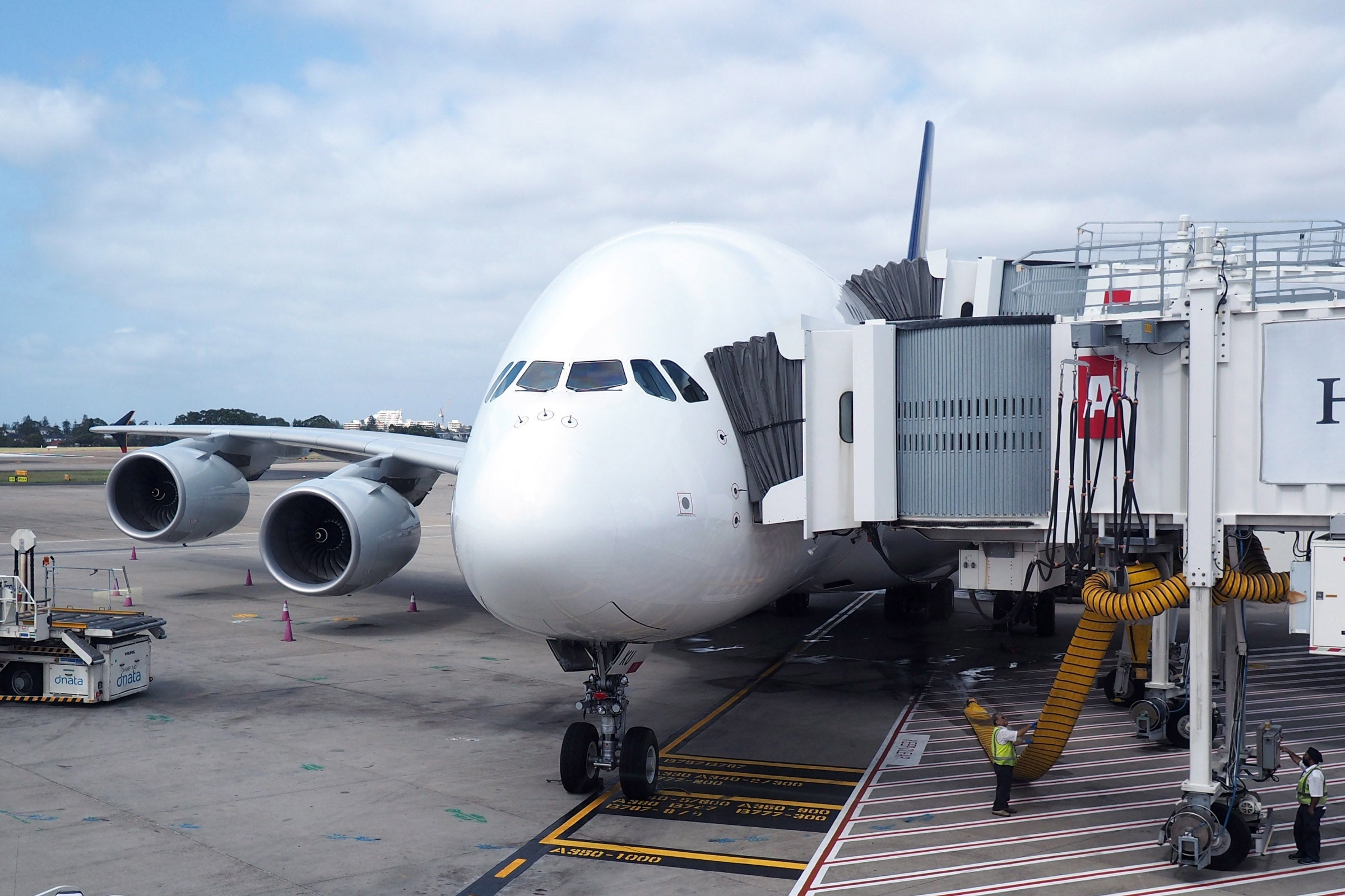 There were three jet bridges for our A380, including one that let me off at the base of the stairs to the upper deck.