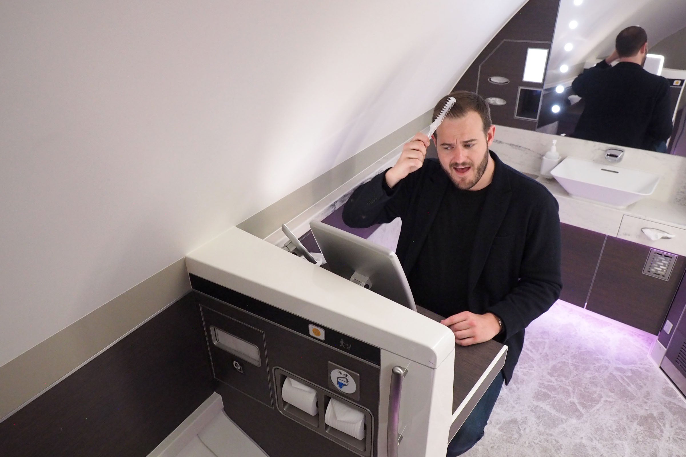 The starboard side lav is considerably bigger, but the port side one is a decent size, too. With two lavatories for six passengers there shouldn't be much of a wait. They're not nearly as impressive as Emirates' shower suites, of course — and I really wish Singapore had added showers here.