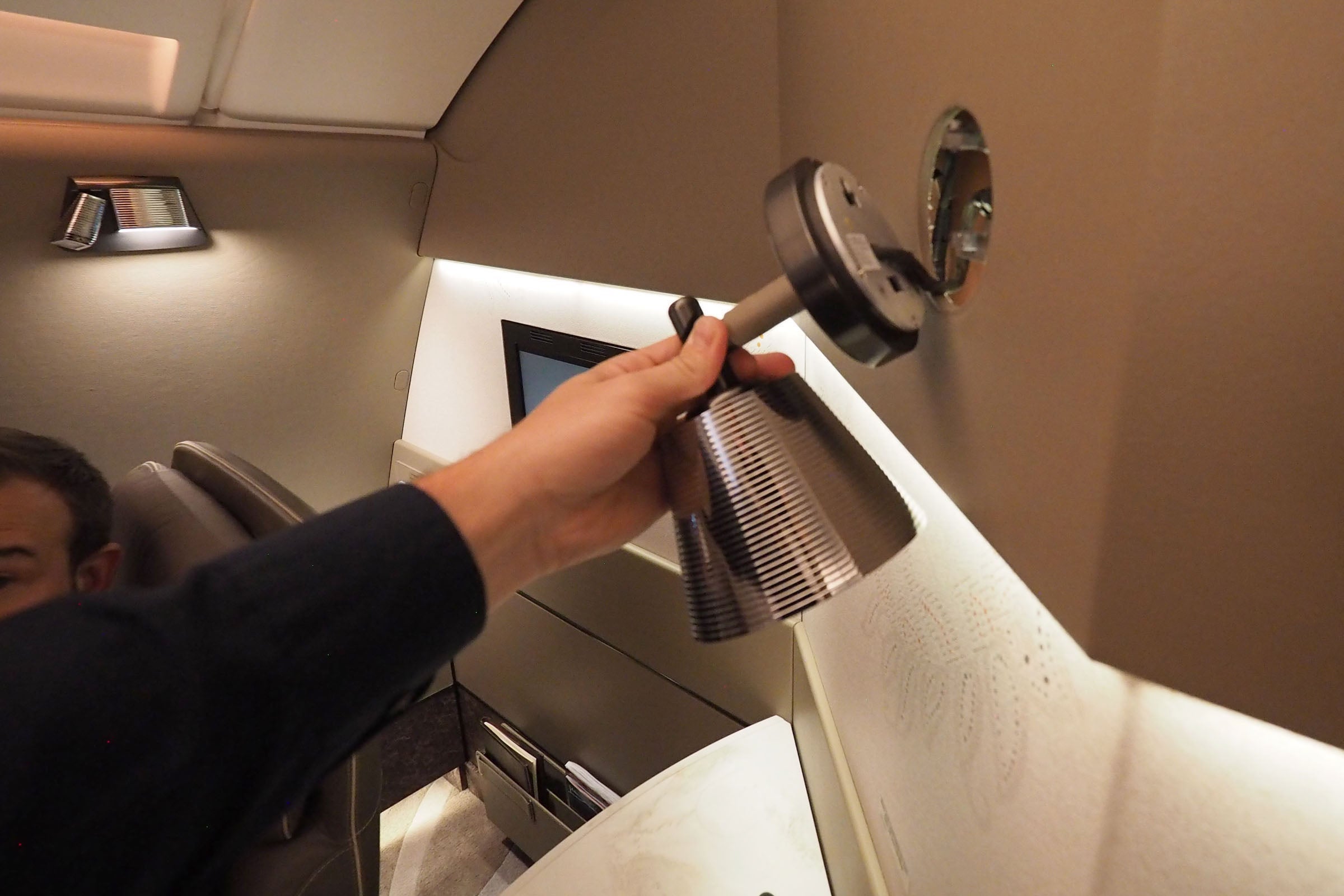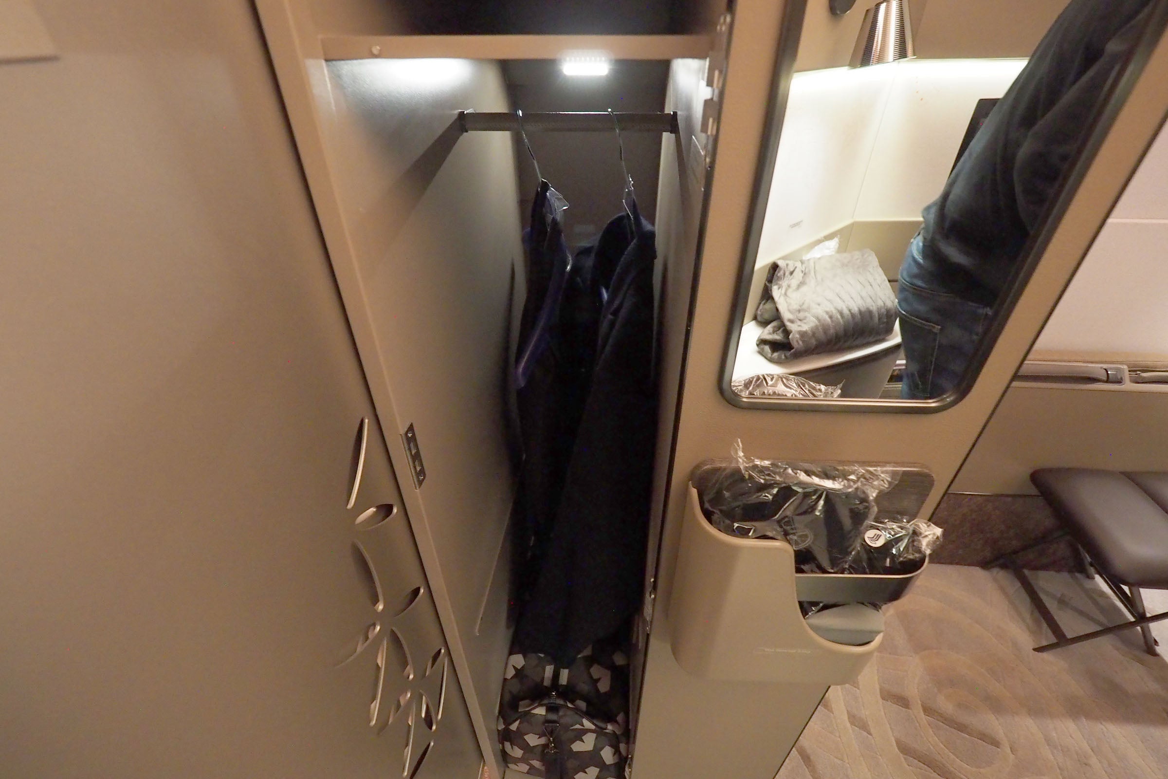 The locker is located just next to the sliding door, which I found very easy to operate — you just slide one single panel, rather than bringing two together like on Emirates.