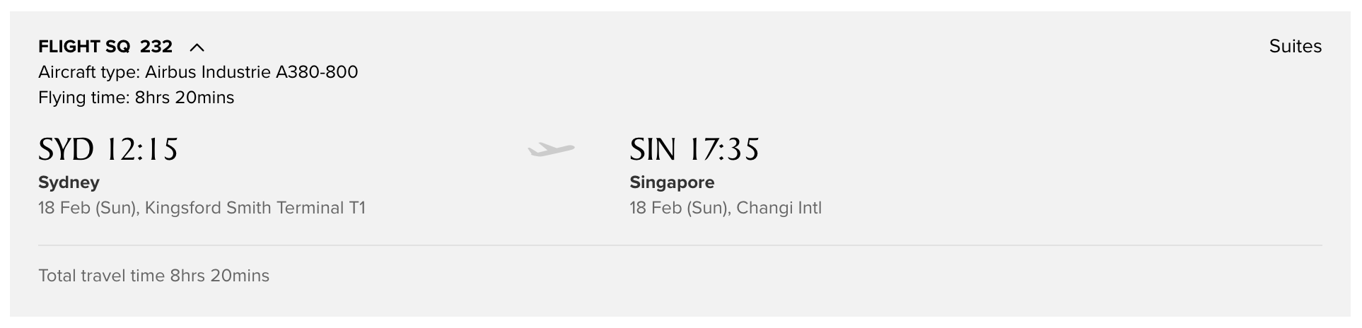 Naturally, as The Points Guy, I try to book flights with points and miles whenever I possibly can, so when the exact flight I needed popped up with suites availability through KrisFlyer, I didn't hesitate to pull the trigger.