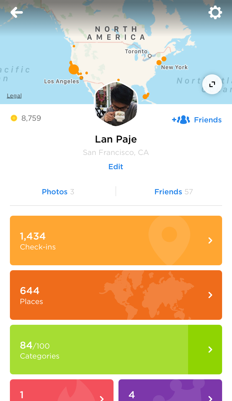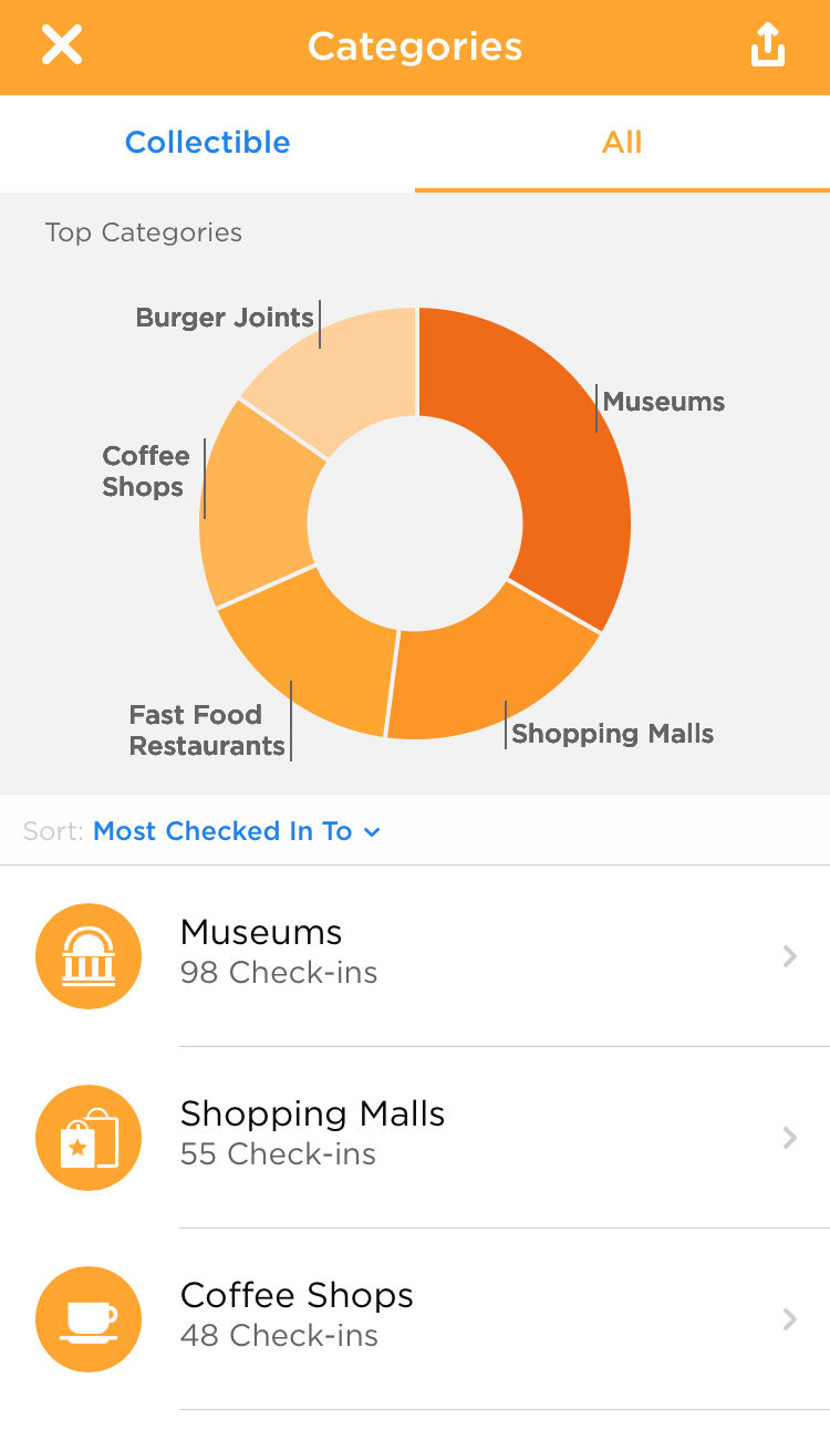 There's also a category feature that details the types of places that users have a tendency to visit; I seem to like going to museums, shopping malls and coffee shops.
