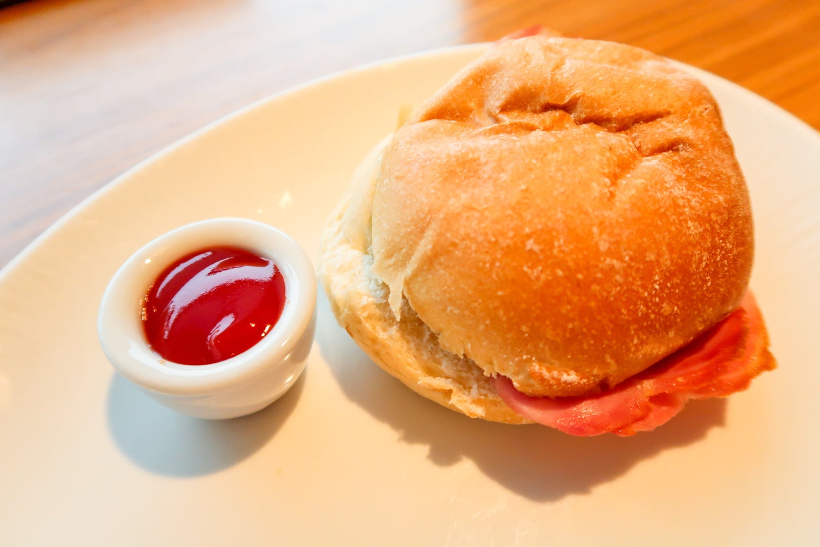 After being rather disappointed with the cold buffet, I got back to my seat to find my neighbor had left without ordering any food, so I smugly headed straight back to the bar to order a bacon roll from the 'all day favourites' section of the menu. It was as disappointingly small as my egg and avocado but tasted good nonetheless. Other all-day options were a fish-finger wrap and beans on toast. No expense spared there.