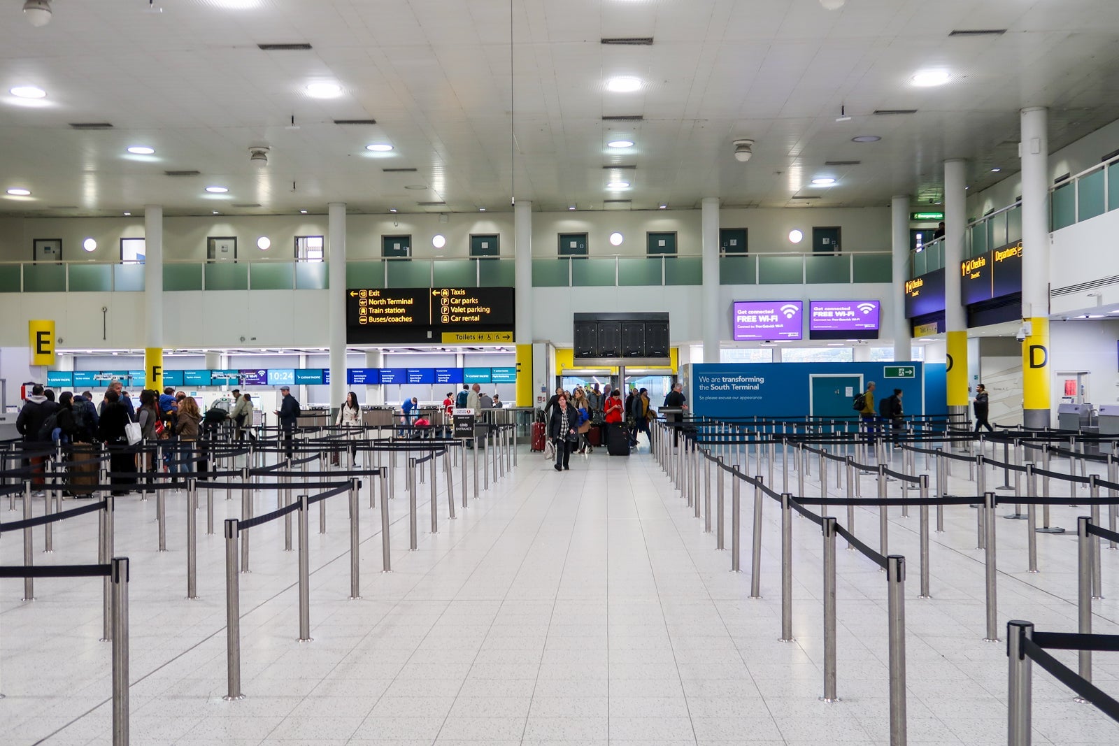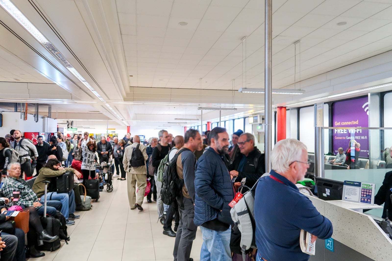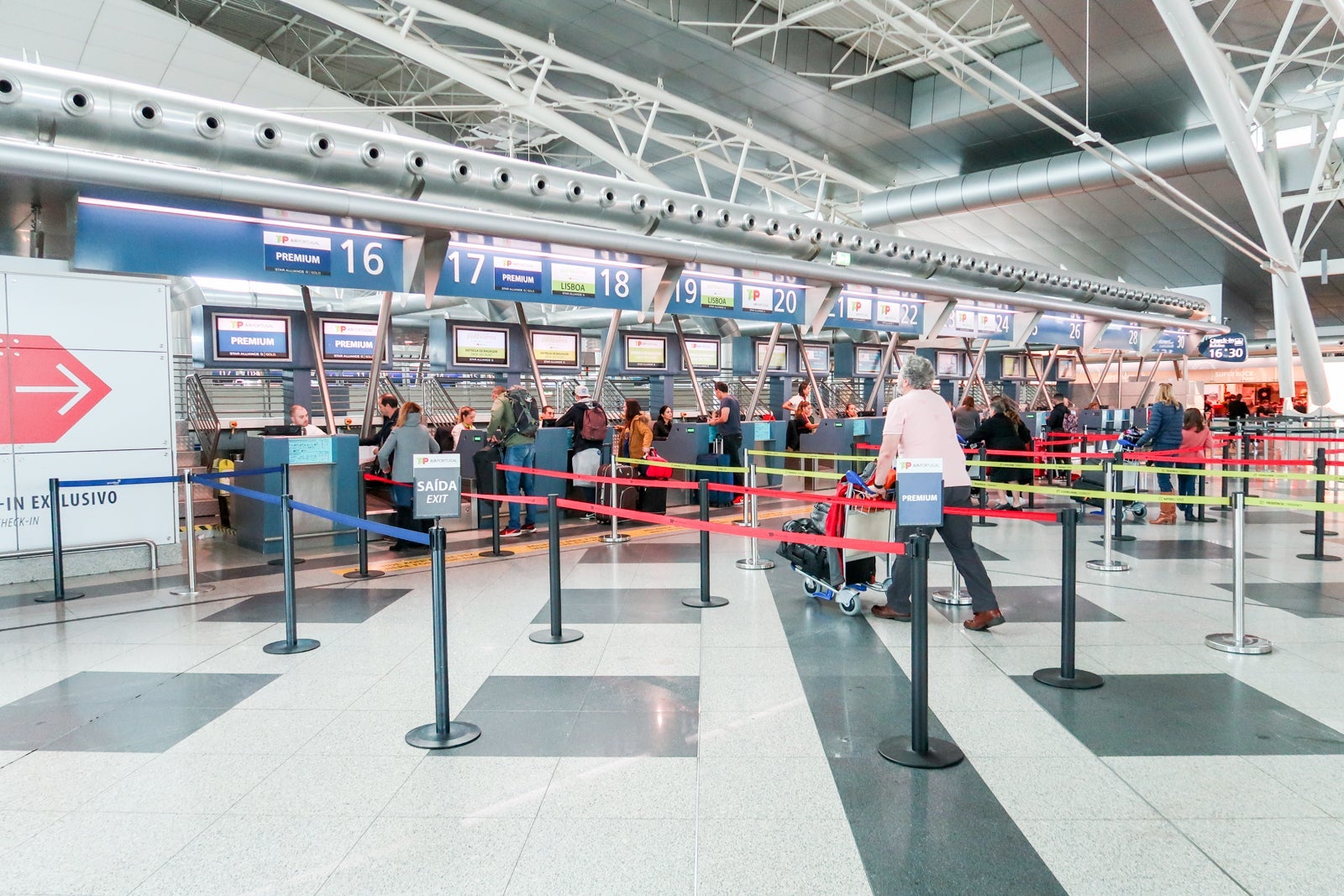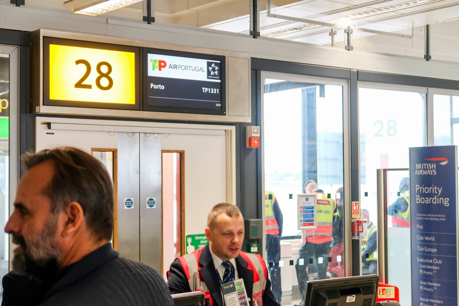 I arrived nice and early, as my business-class ticket gave me access to the No1 Lounge in Gatwick's South Terminal. There was not one single person in either the premium or economy lines at check-in, which meant the process was super quick. TAP's check-in area was in Zone E, next door to Turkish Airlines, which had about a dozen people waiting in line. I had my bag checked and boarding pass in hand in no time at all. No mention of delays was made to me, either.