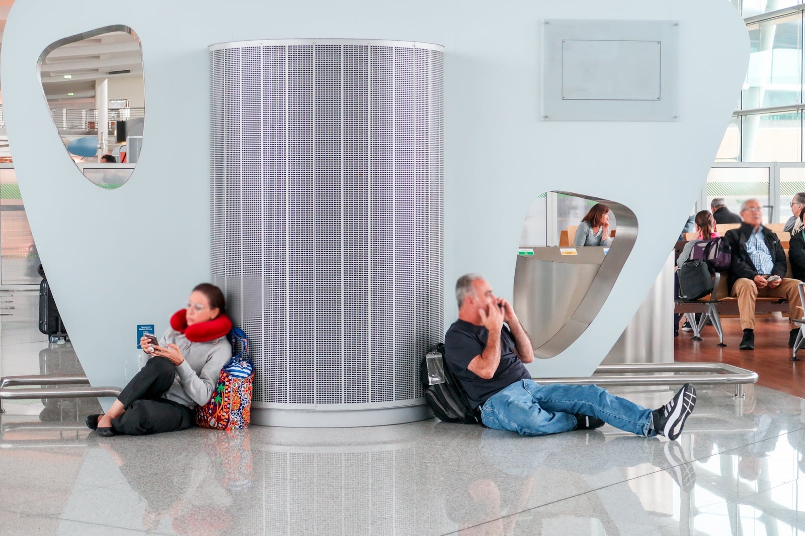 There were a few charging points around the space. Most were poorly located, meaning passengers sat on the floor to charge their devices.