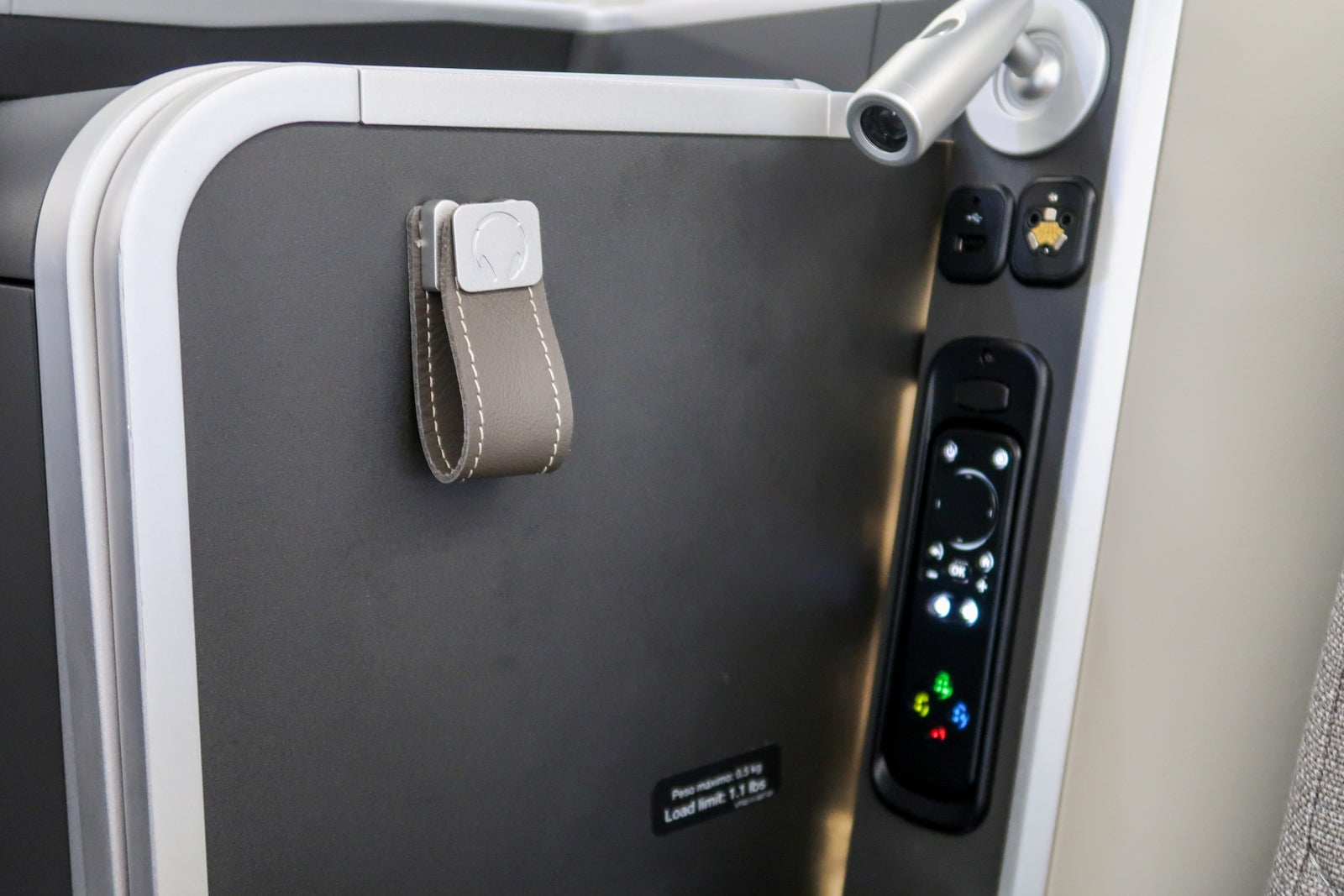 As well as a headphone hook, there was also a water bottle holder, great for when turbulence hit.