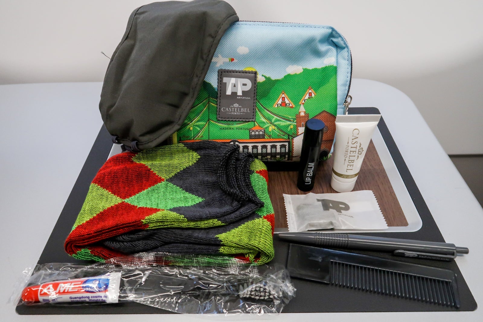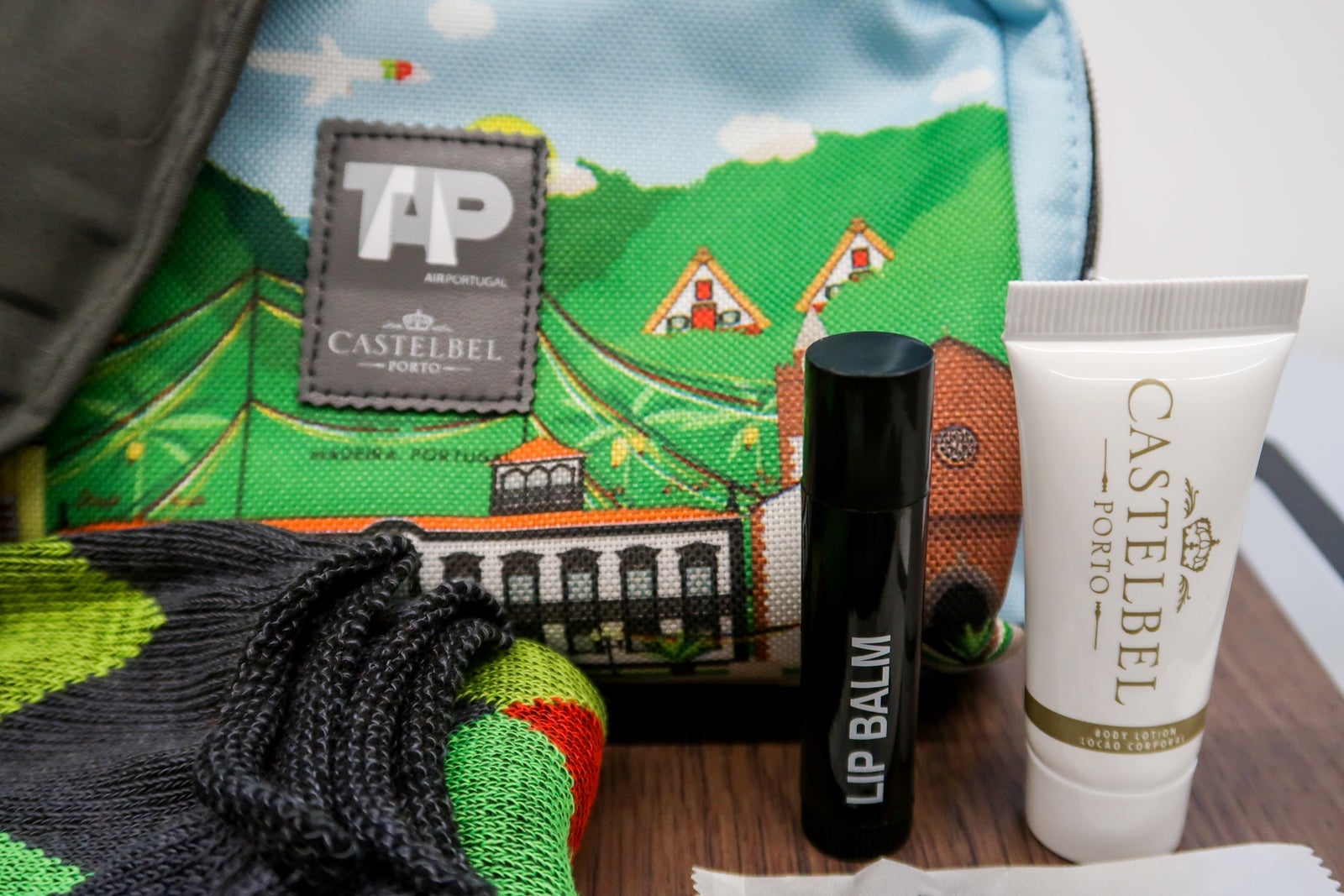 About 10 minutes before takeoff, I received the TAP-branded amenity kit by Porto's very own Castelbel. From what I could gather, there were two or three different designs that were handed out at random to passengers.