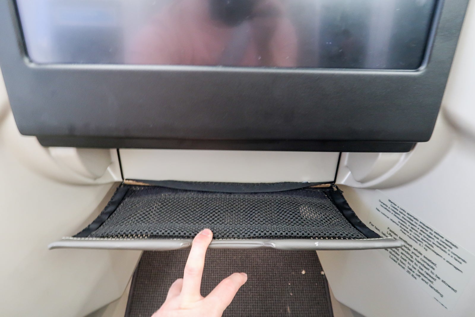 The safety cards and inflight magazines were stored in a small pouch on the other side of the seat next to the window.