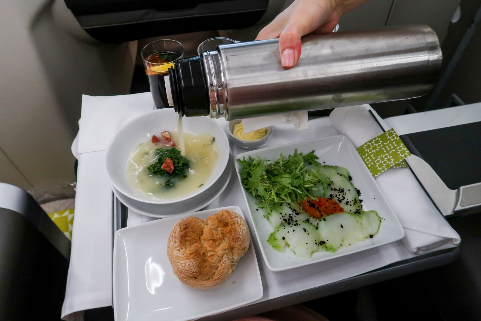 [tpg_rating ticket-class="0" tpg-rating-score="70" ground-experience="10" cabin-seat="25" amens-ife="10" food-bev="14" service="11" pros="Fresh new cabin with comfy throne seat. Tasty food and drink." cons="Very poor ground experience and the service could have been more polished." /]