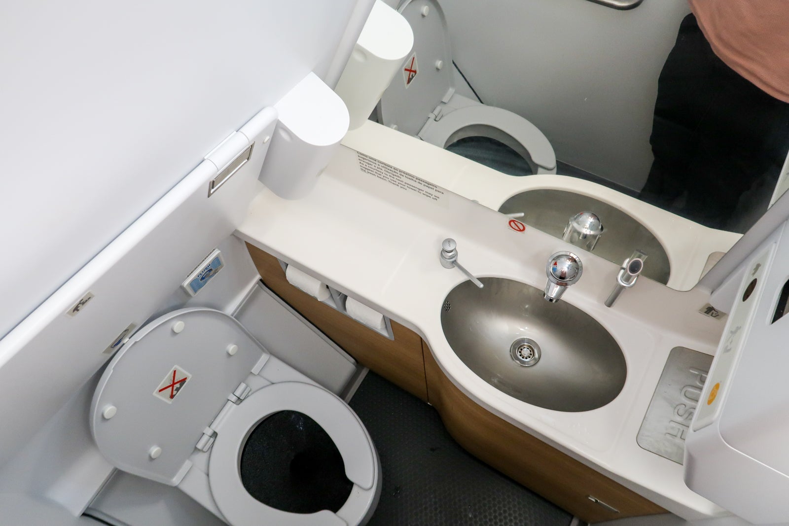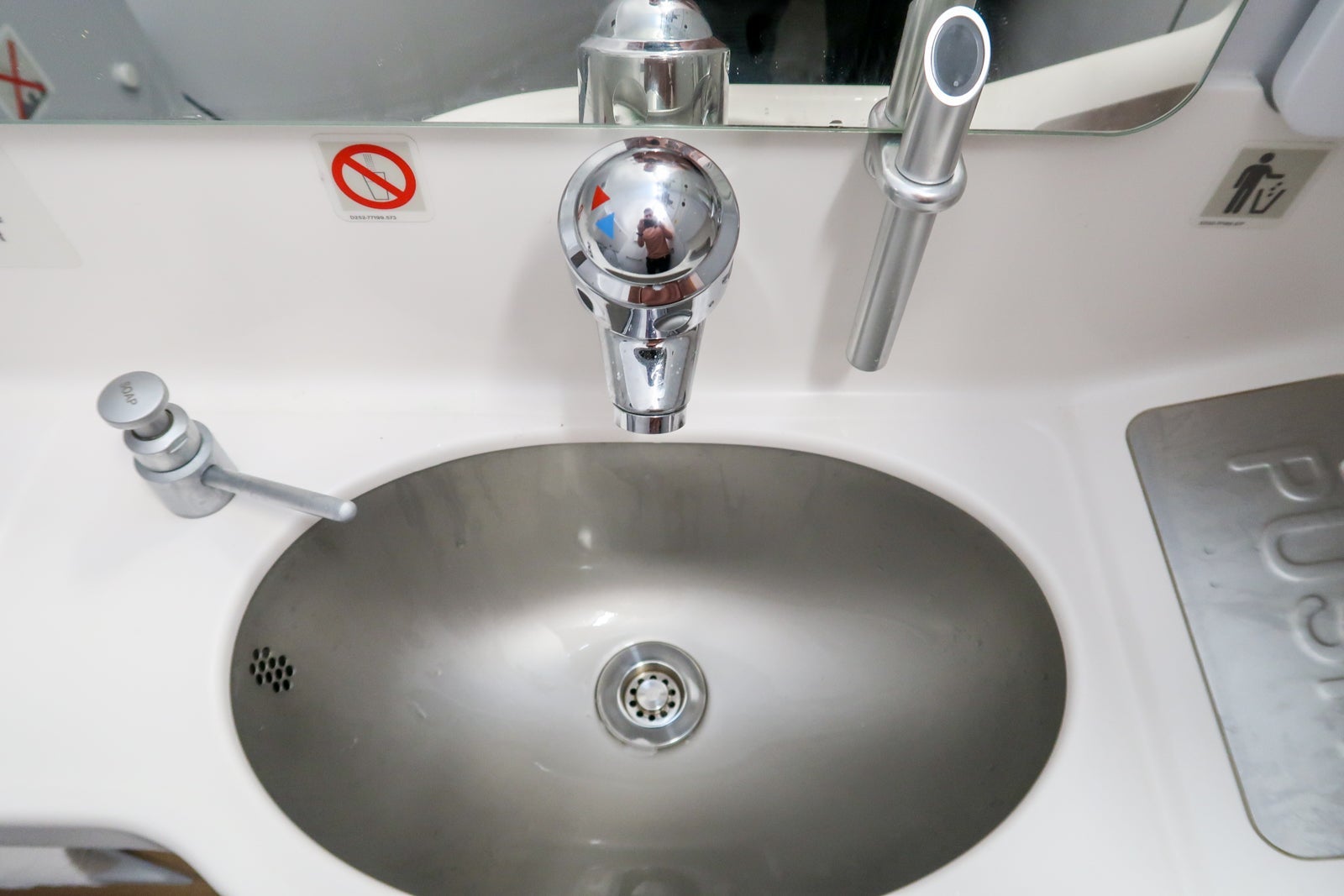 There was nothing premium about the single lavatory in the business-class cabin. It was rather small.