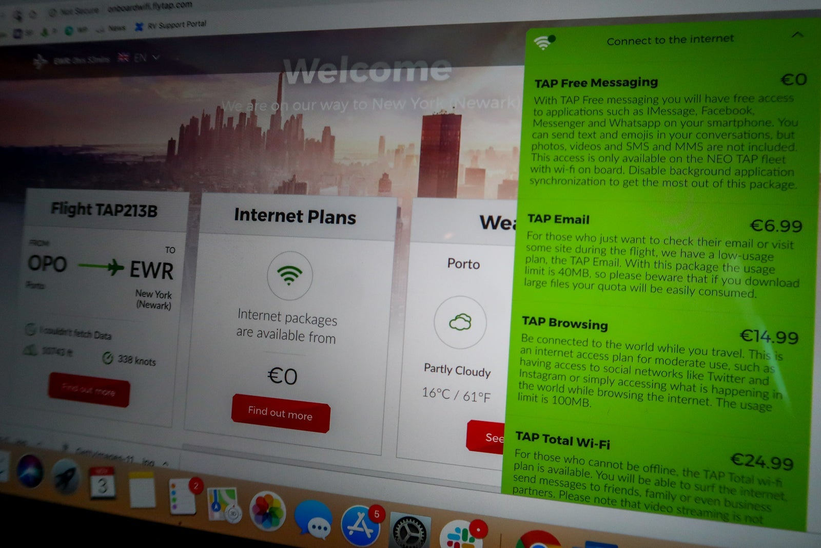 The Wi-Fi was the biggest letdown. There were prices ranging from free for messaging to Total Wi-Fi for 24.99 euros, which would mean being connected for the entire flight — or so I thought.