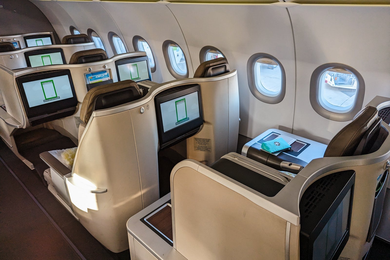 I was able to select my seat online for free when I was ticketed, so I chose the throne seat for my overnight flight on the outbound. It wasn't available on the day flight back, so I chose an aisle seat in the center Row 3. I lucked out and didn't have anyone sitting next to me.