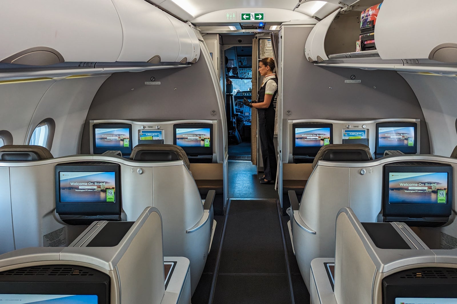 If you're looking for course-by-course dining, closed-door suites and doting service, TAP does not offer what you seek, at least not on its Airbus A321LR on the short overnight flight between Dulles International Airport (IAD) and Lisbon Airport (LIS). But if you want a more affordable front-of-the-plane experience, with fun cultural touches like an all-Portuguese wine list and Portuguese language lessons on your seatback monitor, you might want to give TAP a try.