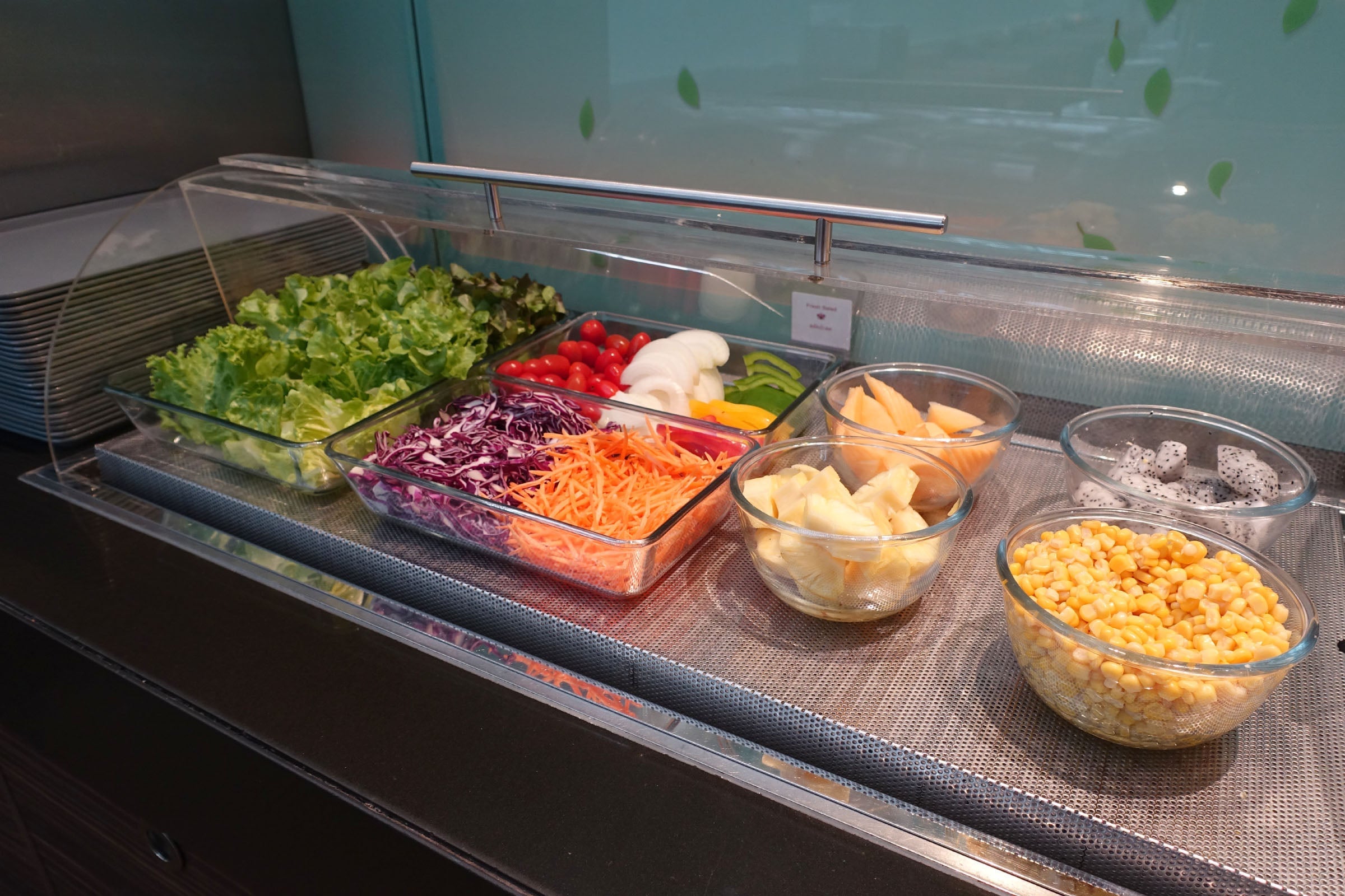 There's a satellite salad bar and beverage area, and then one main buffet at the center of the lounge.