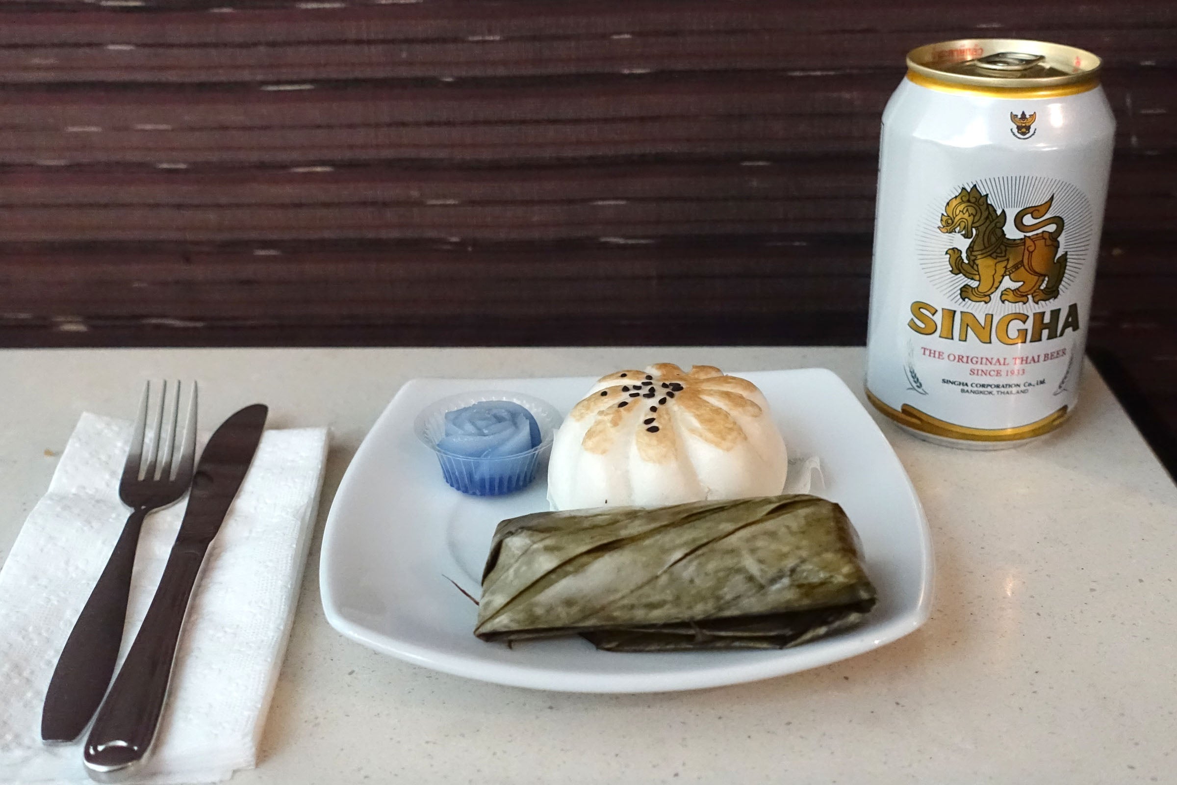 I grabbed a steamed bun and sticky rice, along with a Singha beer.