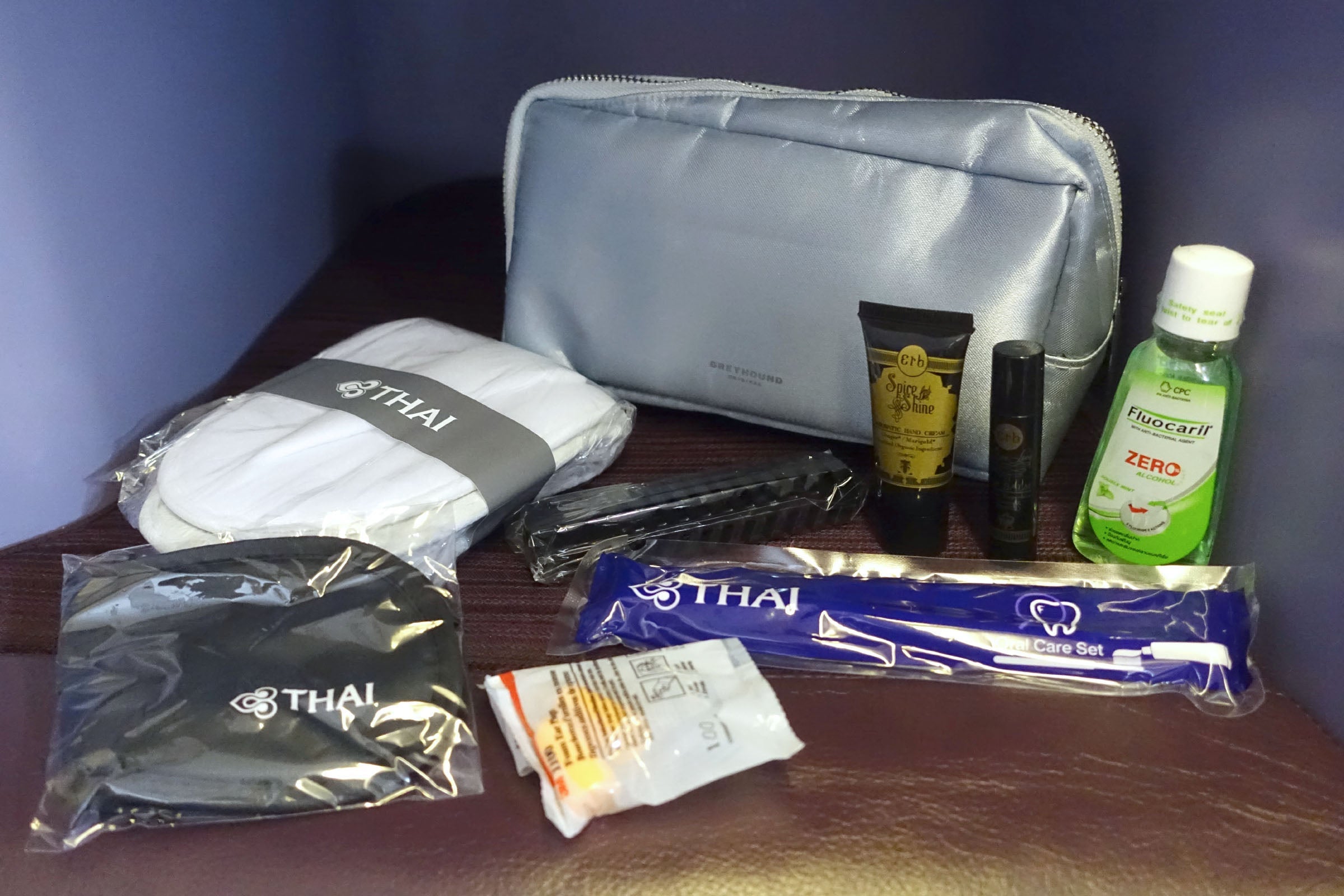 The business-class amenity kit had a basic assortment of items, including folded-up slippers, an eye mask and earplugs, dental kit, hairbrush, hand cream and lip balm.