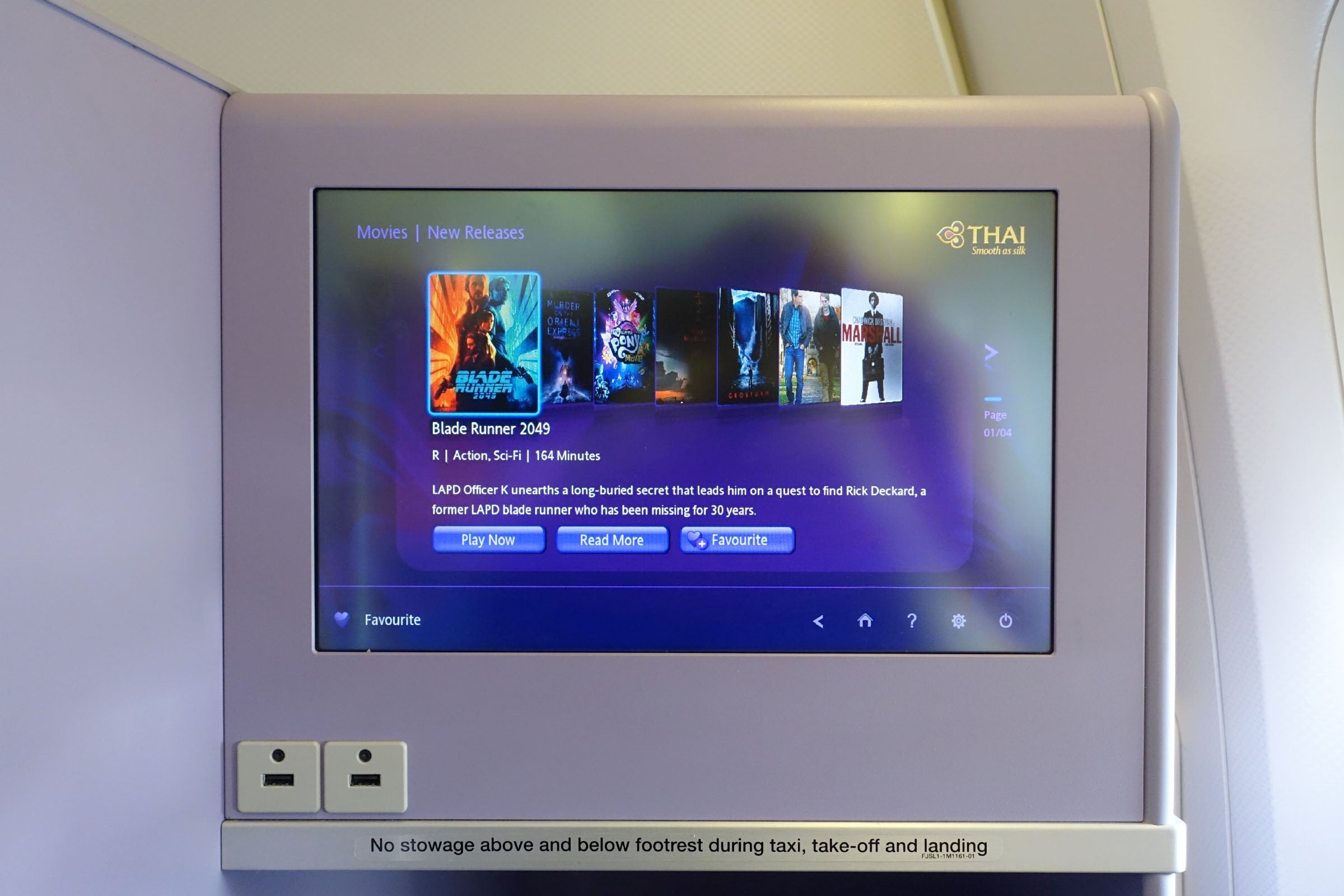 Thai does not offer Wi-Fi on its 777s, although it is available on the airline's A380s, A350s, 787s and select Airbus A330-300s. Service costs as much as $35 for 100MB, though, so I wouldn't have gotten much use out of it even if it had been offered on my flight.