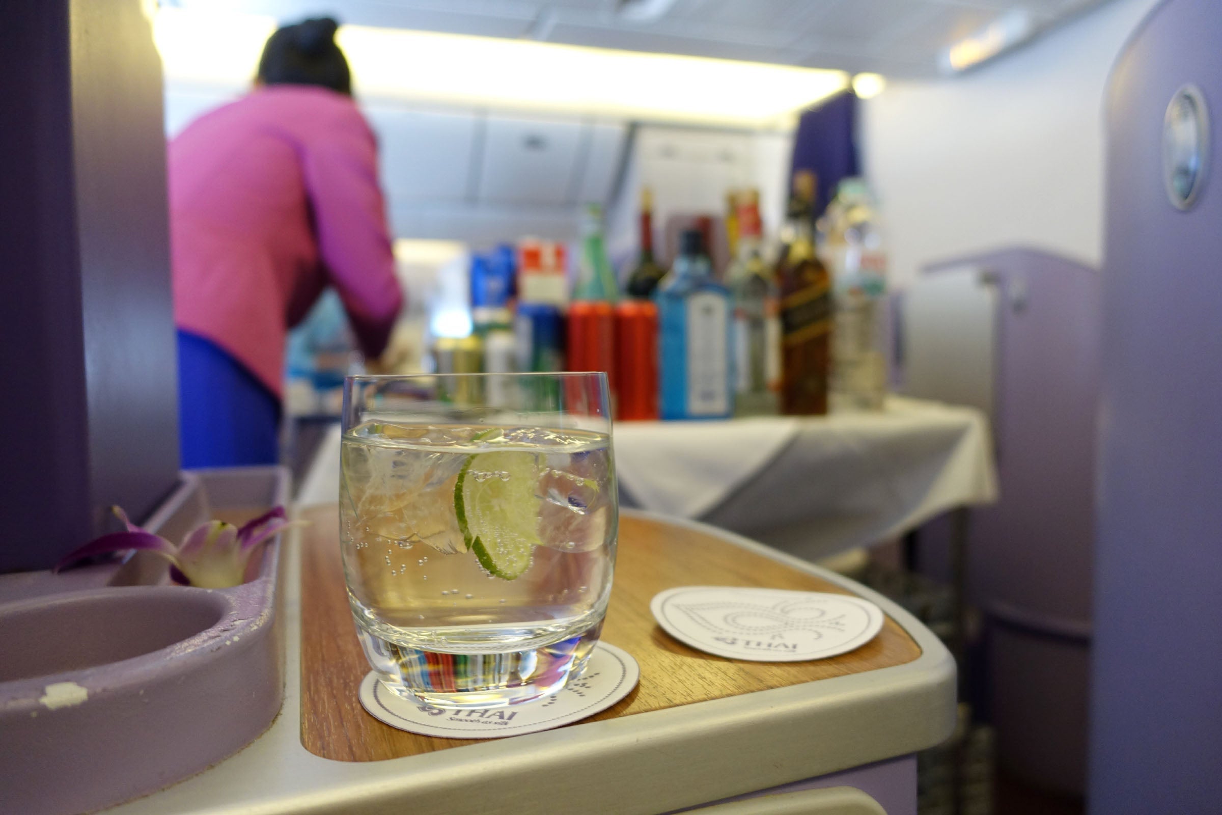 I had a glass of that before departure, then shortly after takeoff the full bar cart came around.