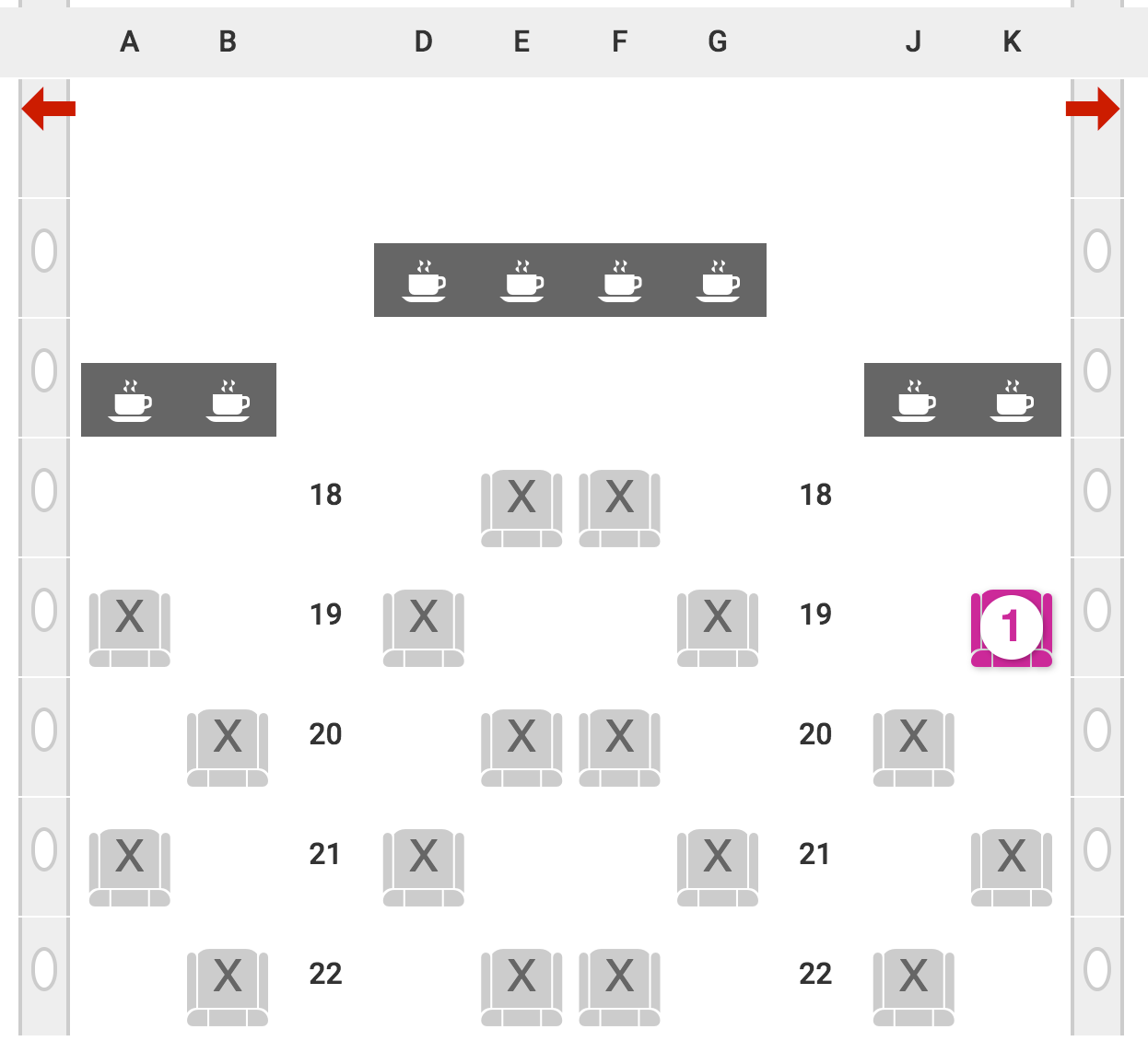 It's also a window-side seat, whereas 20K behind is closer to the aisle. If you're picking a window seat, I recommend A and K seats in rows 12, 15, 17, 19 or 21, since they offer more privacy.