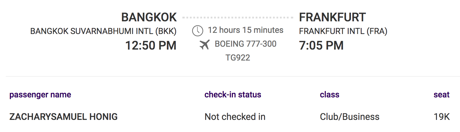 Since we try to work reviews into every leg of a trip, my options were incredibly limited. I settled on Thai Airways' 777-300ER for the long-haul segment from Southeast Asia to Europe, in the airline's comfortable 1-2-1 staggered business. I've flown Thai first class on several occasions, on both the Airbus A380 and Boeing 747-400, so I was curious to see what the experience would be like in biz.