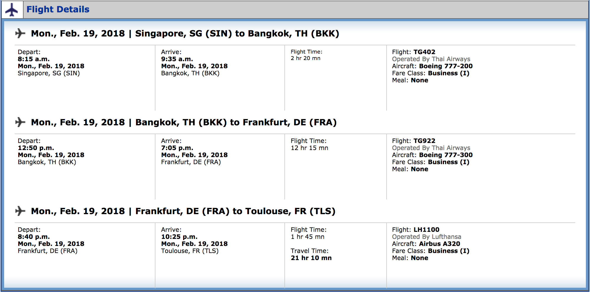 We could have also booked this itinerary via Aeroplan for 75,000 miles, however we've found that United offers superior customer service during irregular operations, and figured it'd be worth spending the extra 25,000 miles for that insurance policy of sorts, since a cancellation could have caused me to miss key events in Toulouse.