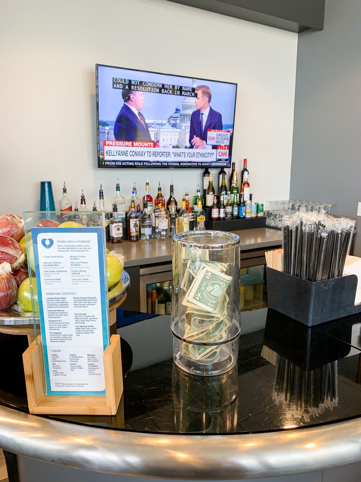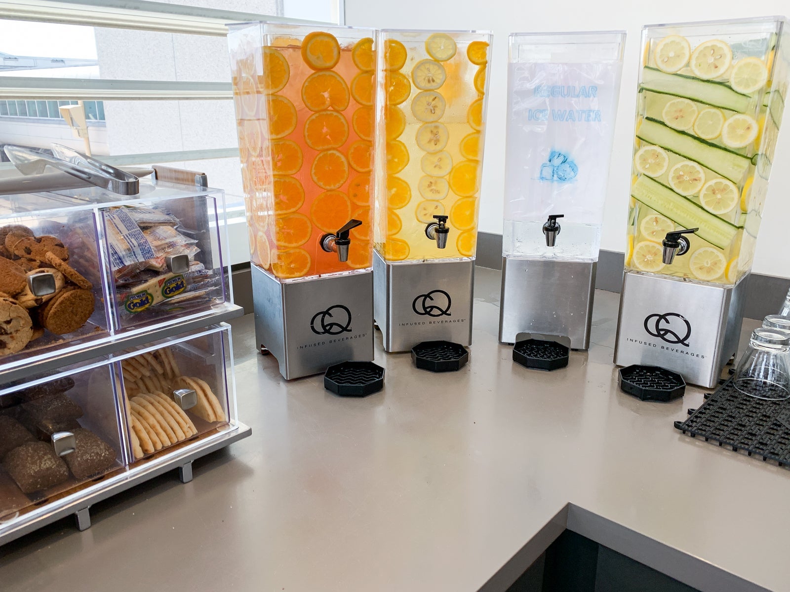 That's all the good news — now here's the bad news. Not surprisingly, the lounge appears to be heavily used. The furniture and carpet weren't in the best condition and Priority Pass members may get waitlisted for entry during peak times. The staff did their best to keep up with the needs from what we could tell, but the heavy utilization rate lent itself to all of the issues that come along with that, such as noise, a bit of mess and limited seating.