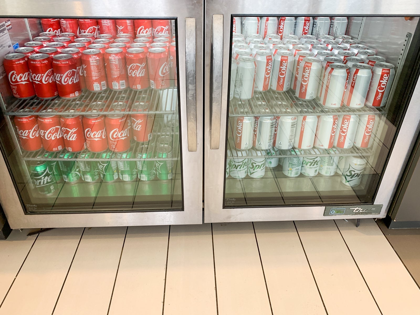 You also can grab yourself a Coke, Sprite or Diet Coke from the fridge.