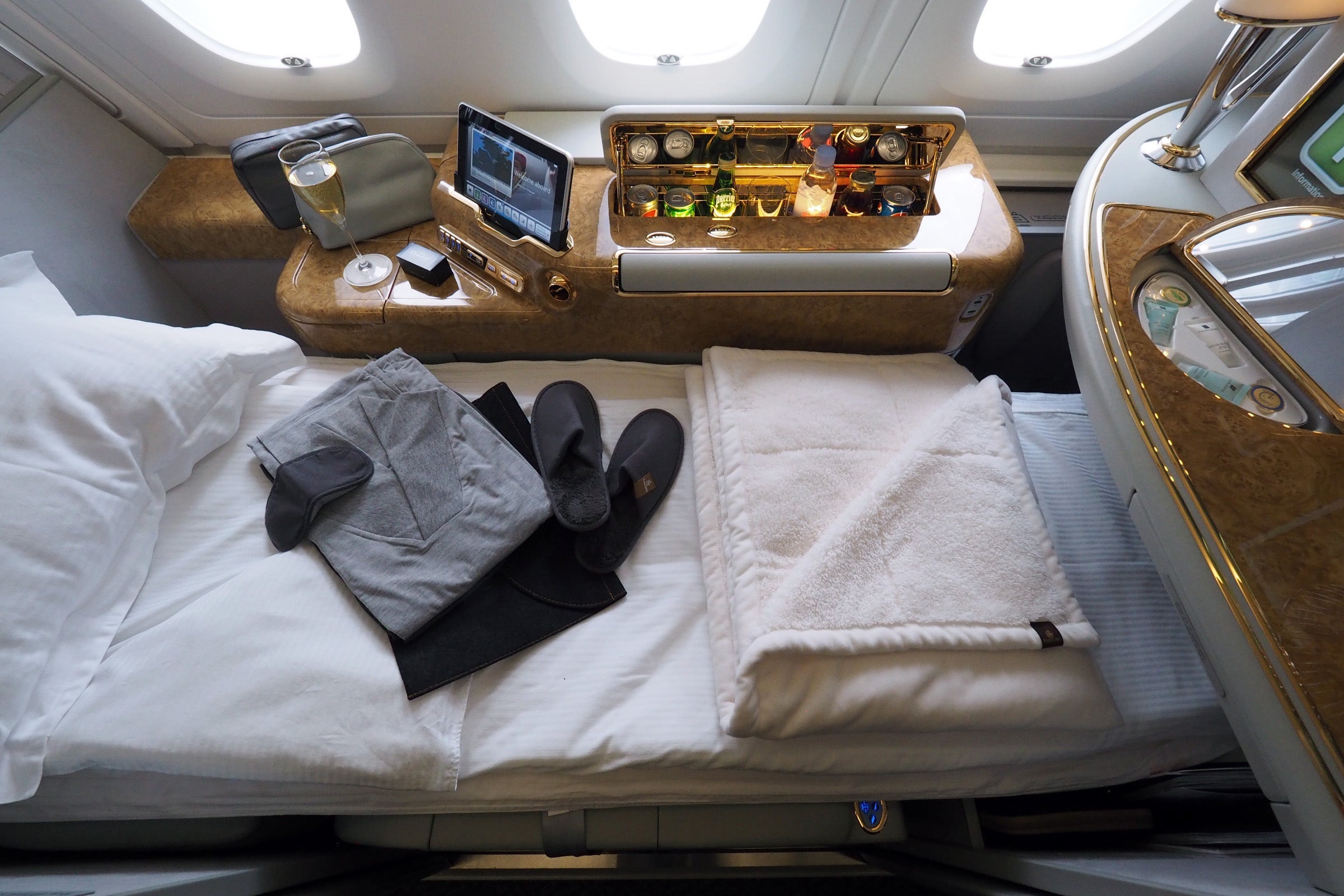 Until I flew Emirates first class earlier this year, I was pretty overwhelmed by all the "bling" — it's definitely a bit ostentatious, sure, but after actually flying the product I didn't feel like it was too over the top.