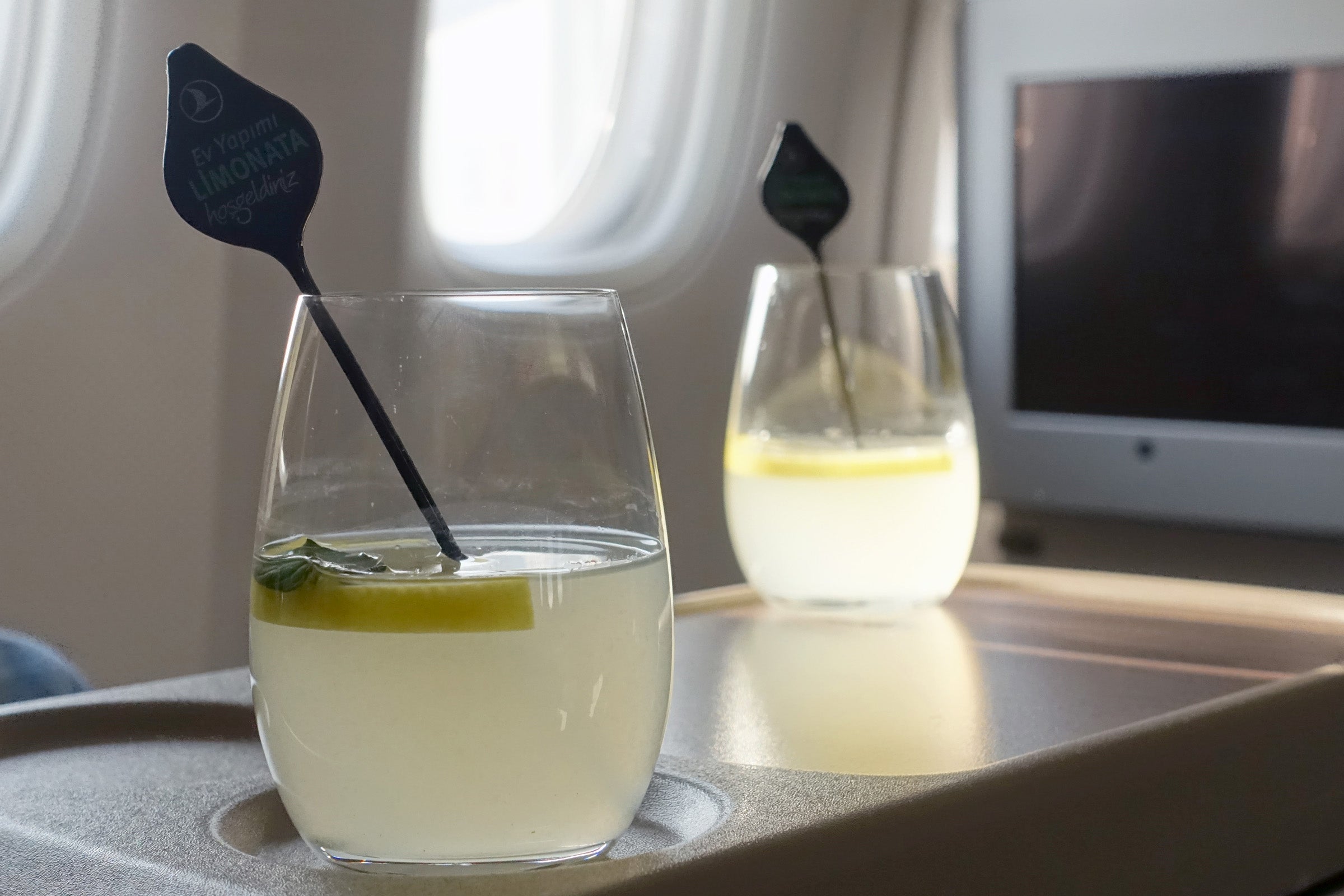 Turkish Airlines is renowned for its catering, which is provided by Vienna-based Do & Co. Everything was a step above what you'd find on most competitors, with exceptional attention to detail — the swizzle sticks included with the welcome drinks also identified the beverages, for example. I went with the limonata, which tasted more or less like regular lemonade, but with a lemon slice and mint as a welcome flourish.