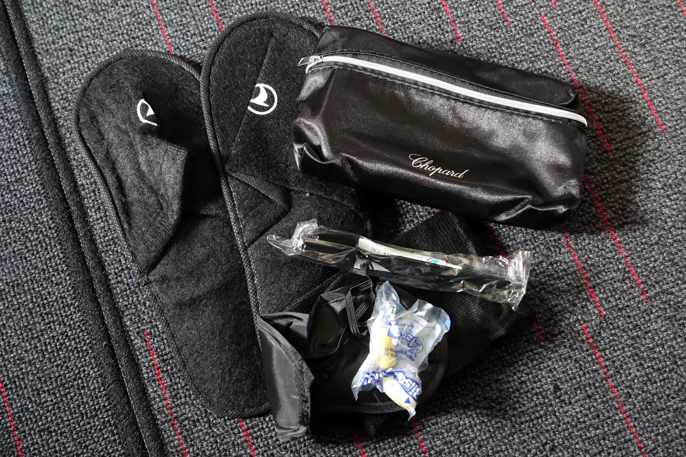 Waiting at my seat was a pair of slippers, plus a very basic amenity kit. To be honest, I wasn't expecting anything at all on a flight this short, so the dental kit, eye mask, ear plugs and socks were more than sufficient.