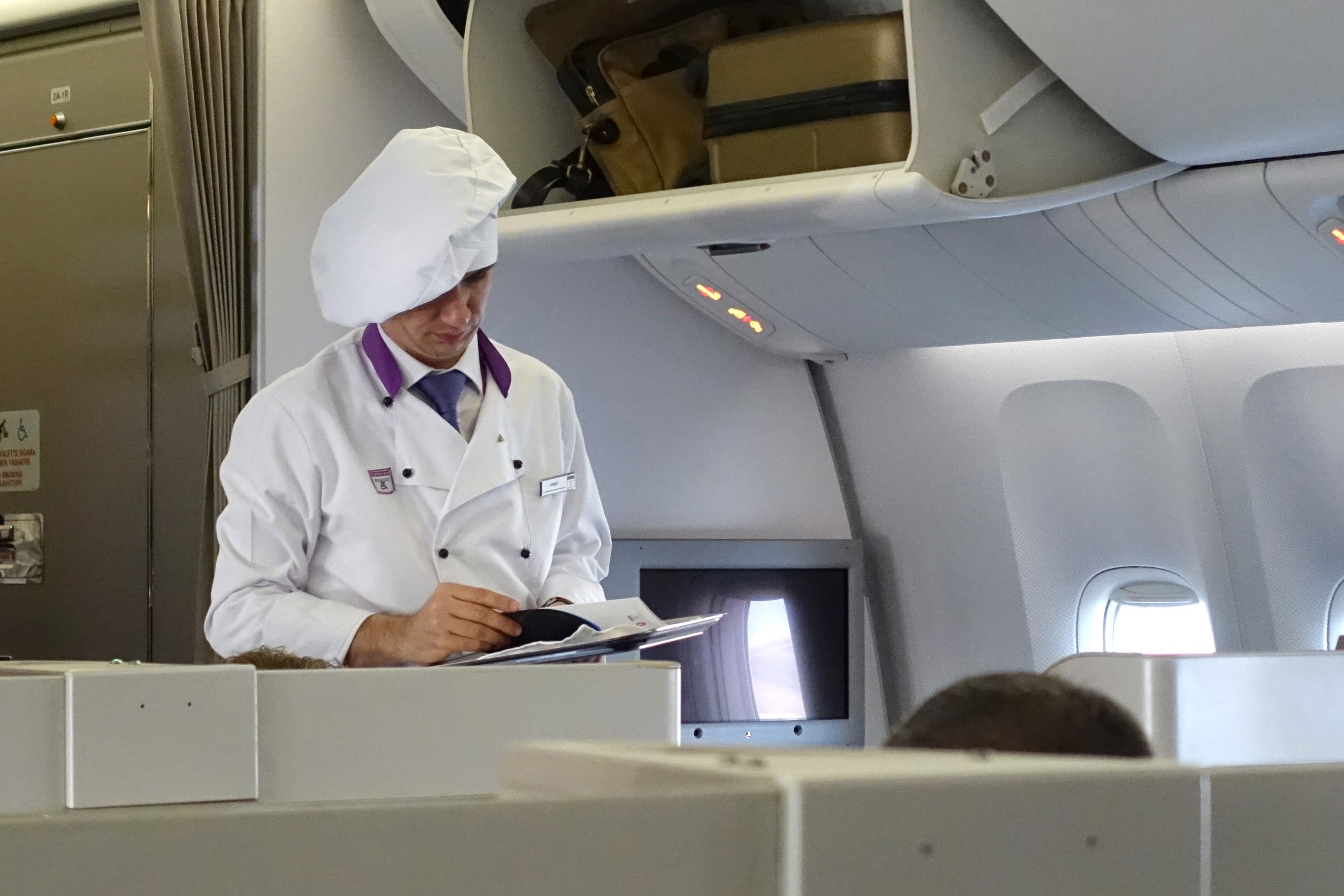 Turkish staffs onboard chefs who are exclusively responsible for food and beverage prep. Even our short flight from Dubai had a dedicated chef.