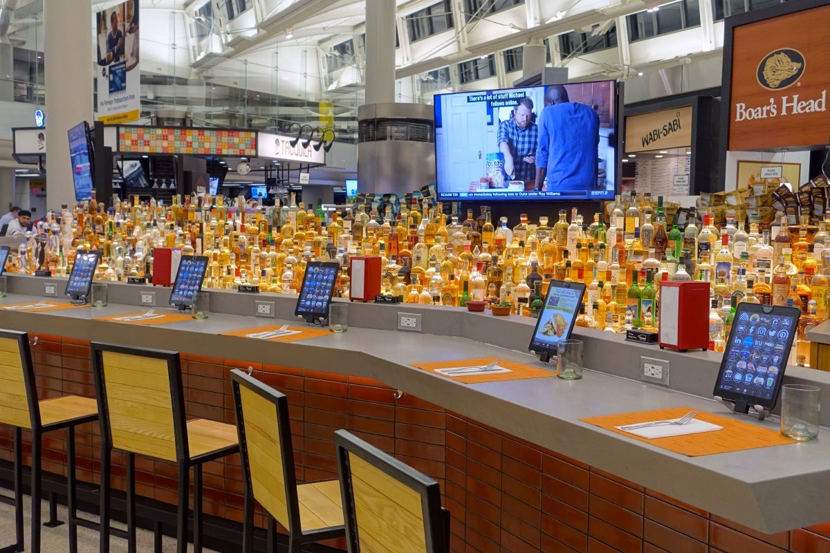 All the new restaurants and bars offer iPads at every seat, and you can pay for your food with miles — at a not-so-great rate.