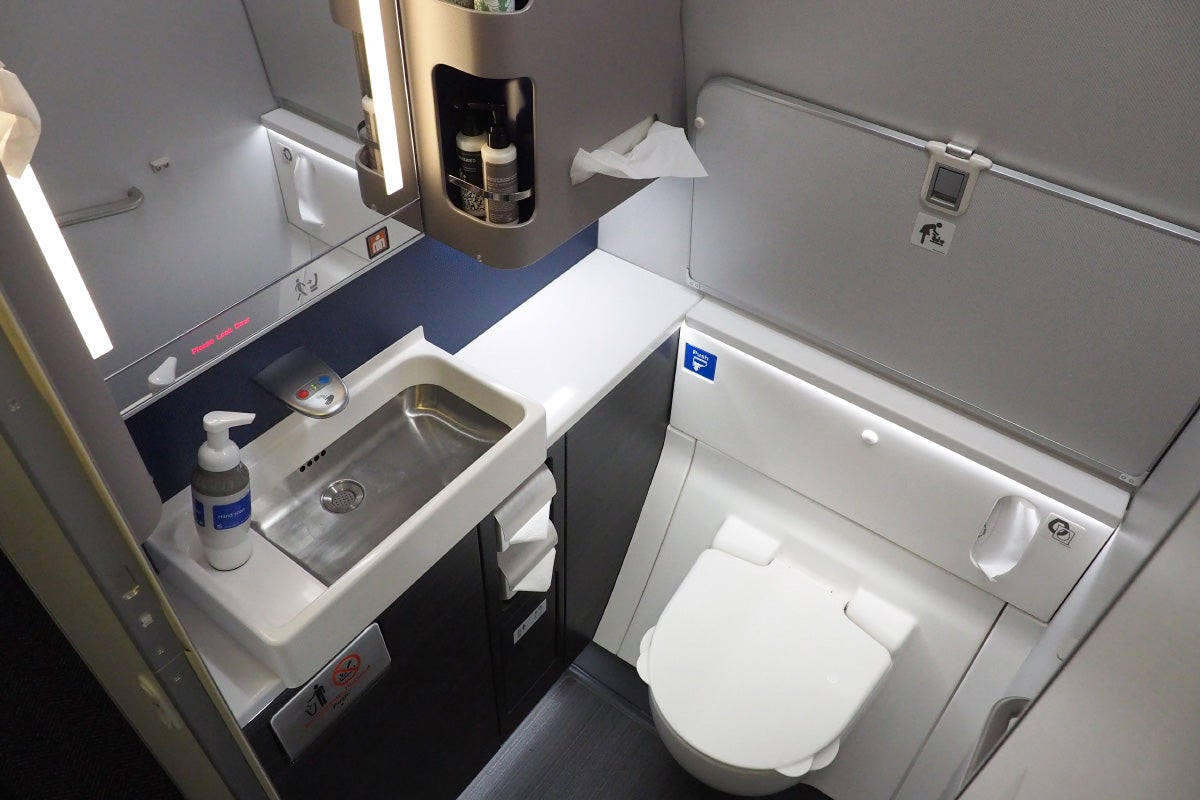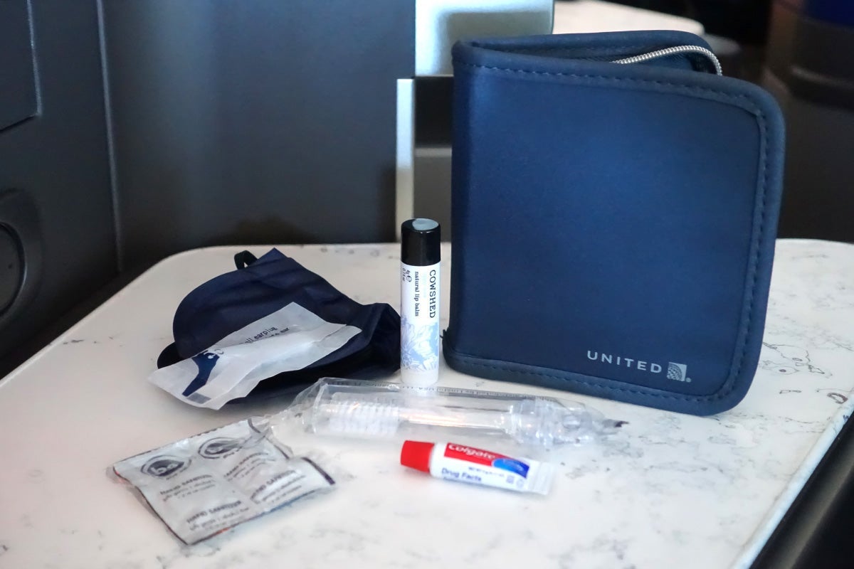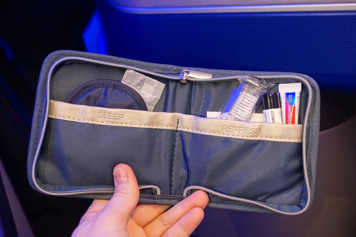 There's also a small amenity kit — essentially a condensed version of what you'll get on international routes.