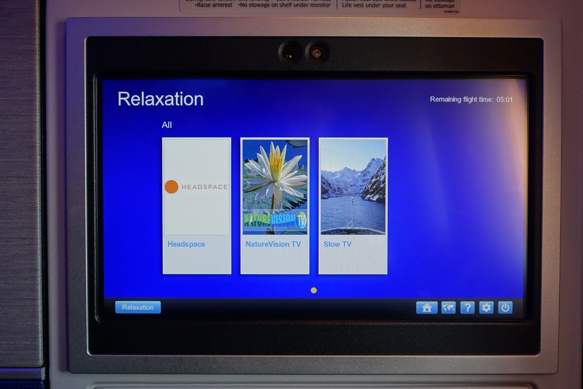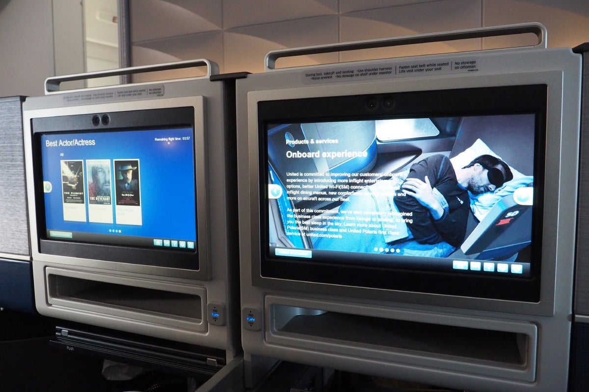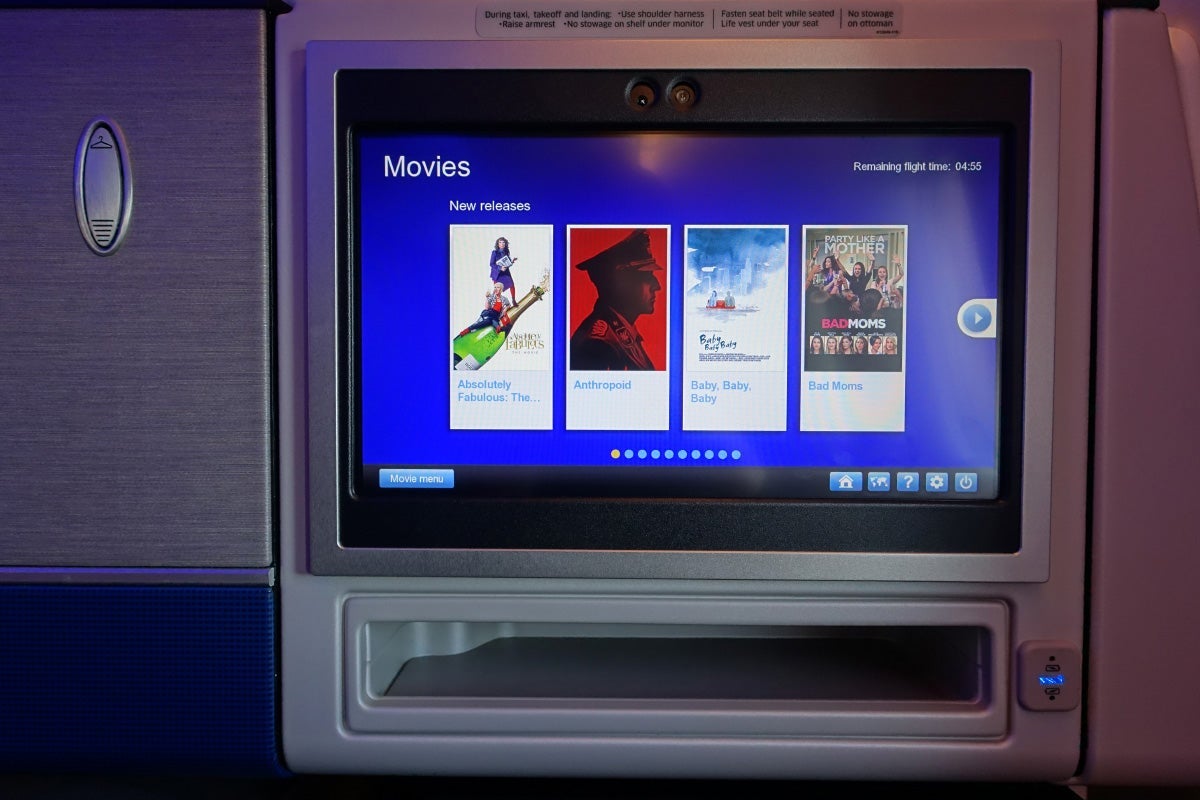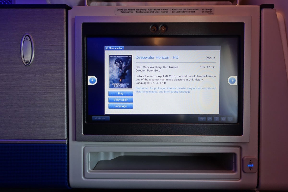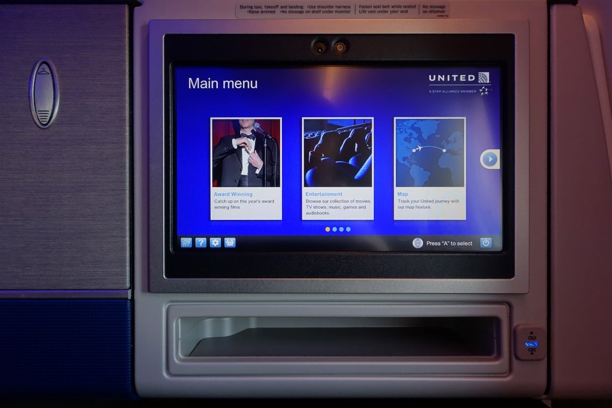 Since I couldn't get any work done over the Wi-Fi, I decided to explore the IFE system. Each Polaris seat offers an 16-inch touchscreen display. While the content itself is identical to what United offers on other aircraft, the screen is much sharper and a bit more responsive.