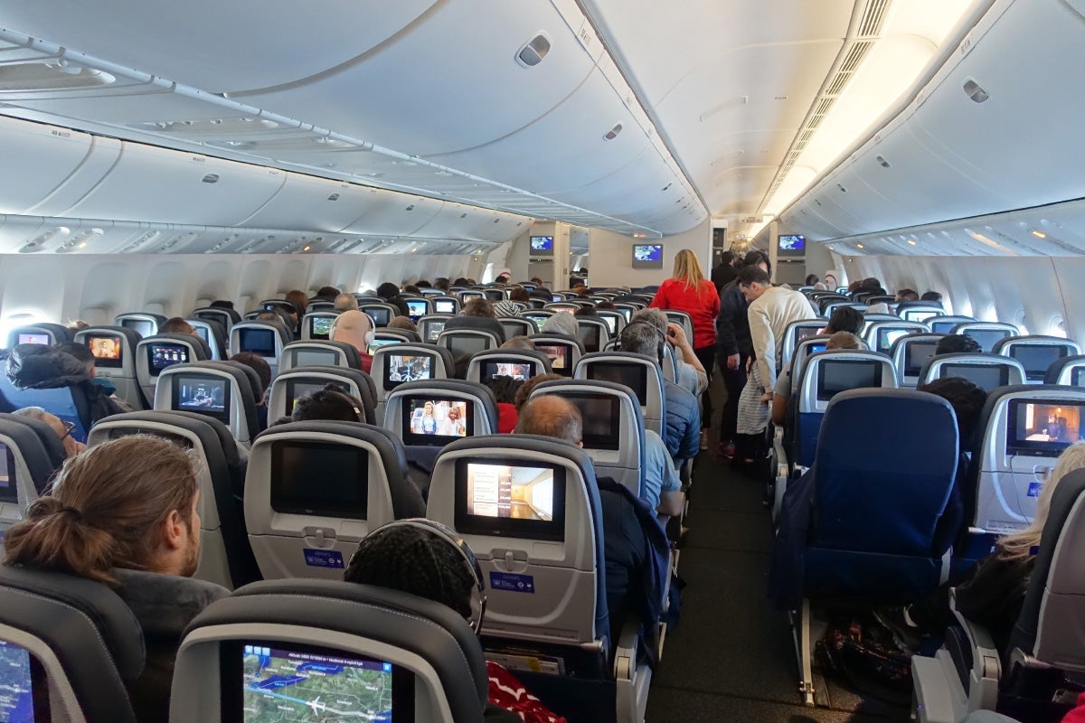 United's 777-300ER is a huge step up, as long as you're able to fly in business. However, with seats in a 3-4-3 configuration in the back of the plane, it's a tight squeeze in coach — be prepared to bump shoulders and wrestle for the arm rests a bit more than you're used to on United's other 777s. There are a few choice economy seats that remain comfortable despite the limited 17-inch width, such as the exit row Economy Plus seats in row 39, but if you're unfortunate enough to end up in a center seat in the regular economy section, you might find a 16-hour transpacific journey to be pretty unpleasant.