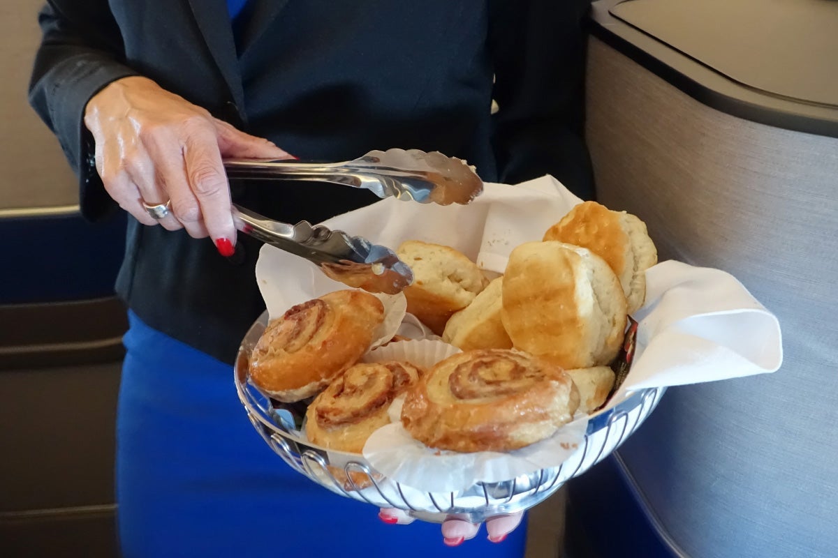 There were also warm biscuits and United's delicious cinnamon rolls — they're fantastic, but I can never not finish the entire thing, so I had to pass today.