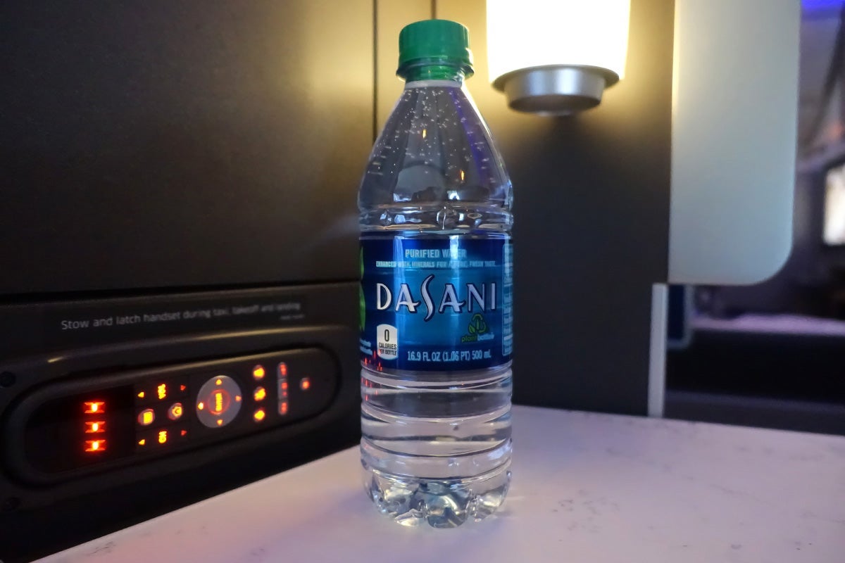 After breakfast, a flight attendant came by with bottles of water, which I always appreciate having at my seat.
