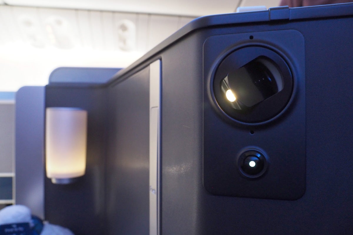 There are several lighting options around the seat — one standalone sconce (as seen above), a small push-out reading light, an overhead light and some soft lighting under the footwell.