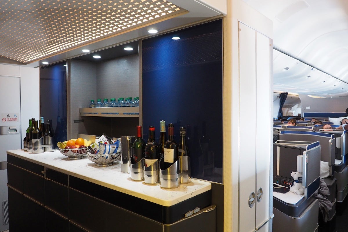 As for that bar I just mentioned... it's nothing fancy, like you'd find on, say, Emirates' A380, but it does offer a nice place to hang with other passengers on longer flights (note that the setup below will only be available on international flights).