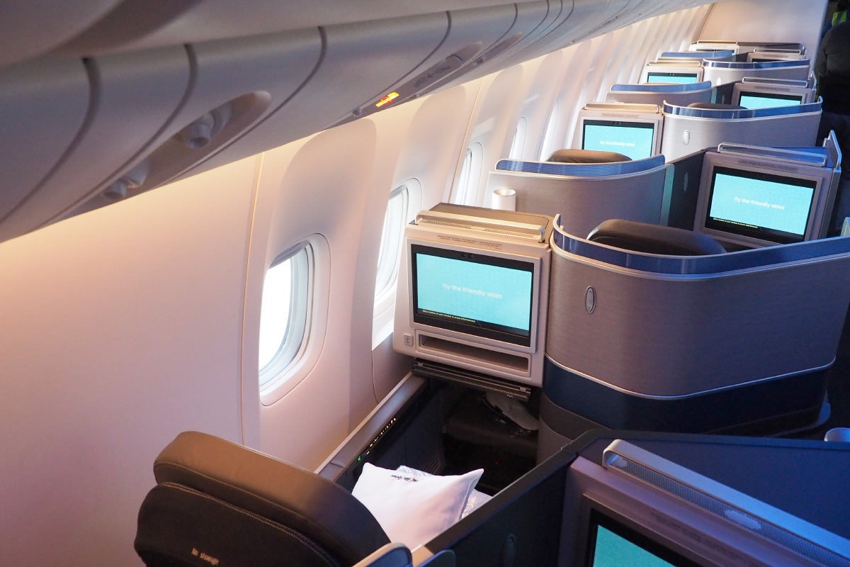 Although we had a chance to fly on this exact aircraft during the airline's "preview" flight earlier this week, with handpicked flight attendants, significantly expanded service and just 60 passengers on board, it was hardly a typical experience. Today was our first opportunity to experience the new product on a "real" flight, so I booked my seat as soon as the launch date was announced. (Note that because it wasn't possible to arrange an aircraft tour before today's inaugural, some of the images below were captured during this week's preview flight.)