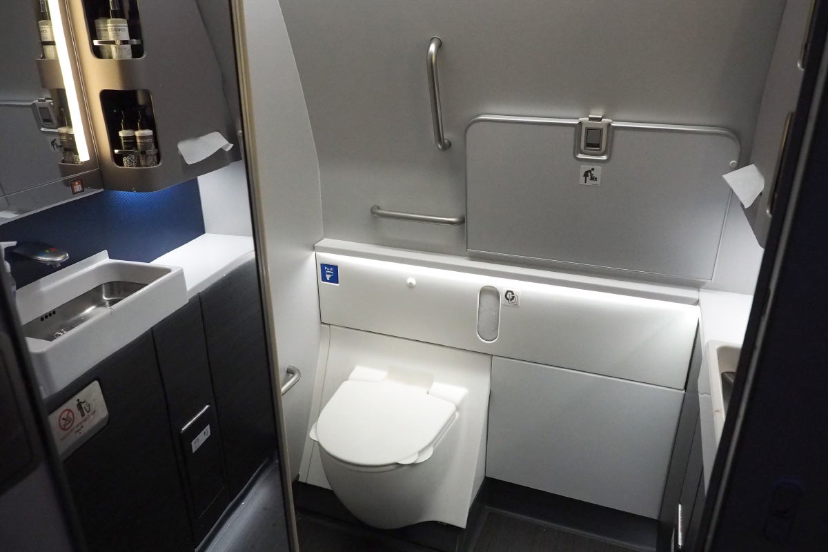 There are also three smaller lavatories — a second at the other end of the mid-cabin bar, and two more located just behind the cockpit.