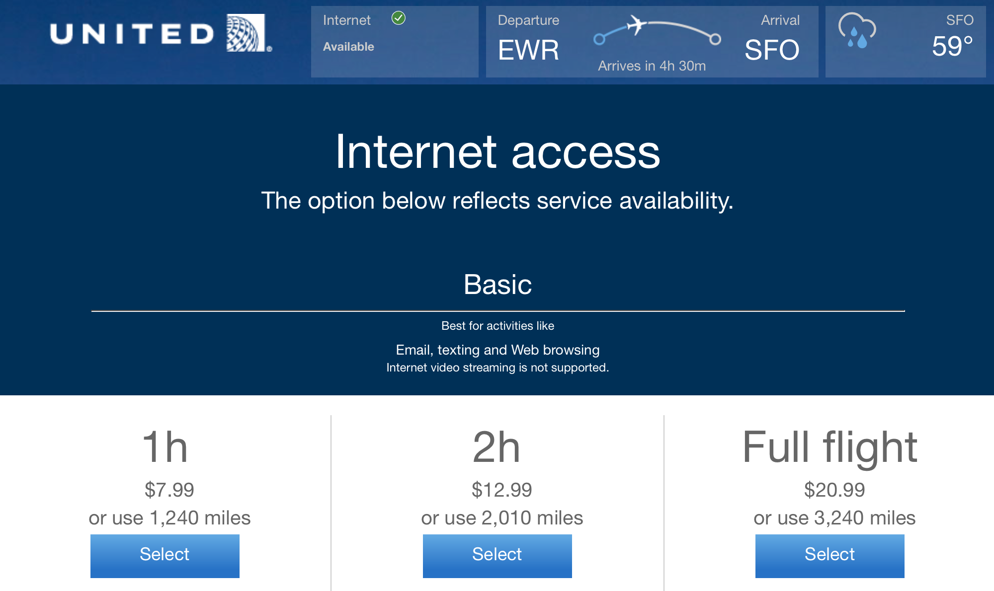 To make matters worse, it's pricey — $20.99 for a full-flight pass, which you'll need, considering it could end up taking the entire five hours to send a few tweets and emails. By comparison, I paid $16.99 for a full-flight pass while flying Chicago to Tokyo, and the Wi-Fi actually worked there.